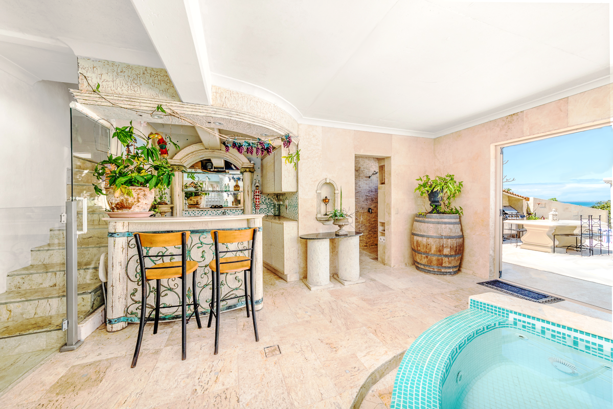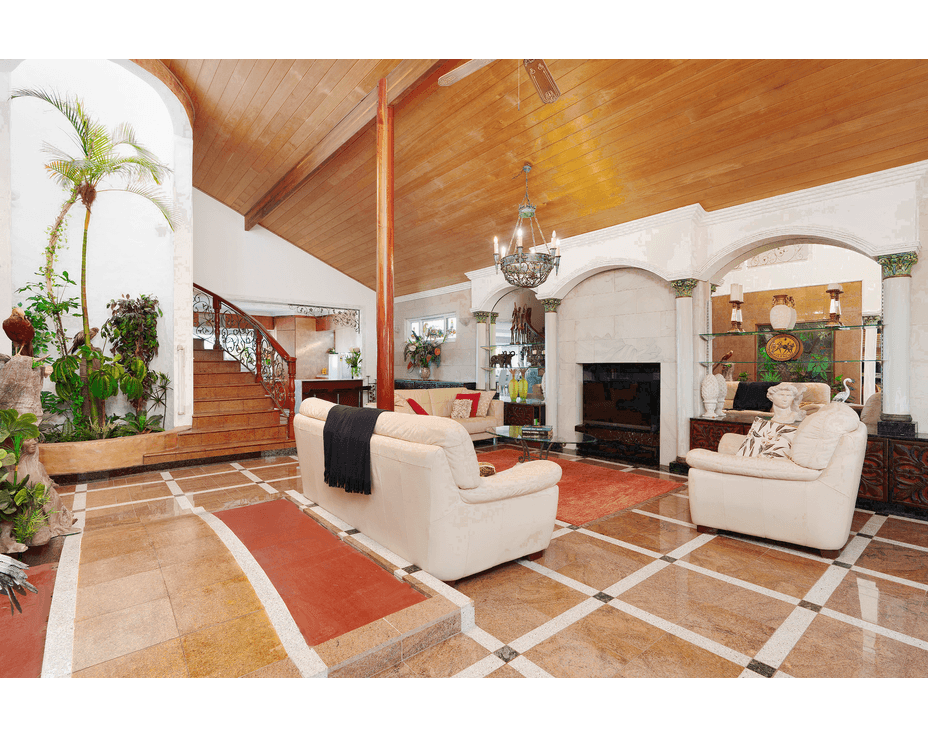 This property presents multiple living zones, accessible internally and externally including 3 kitchens. It also features an indoor/outdoor pool, providing a private oasis, complete with a bathroom and bar. The house itself is solidly built with concrete slabs, showcasing exquisite custom granite and natural stone flooring throughout.