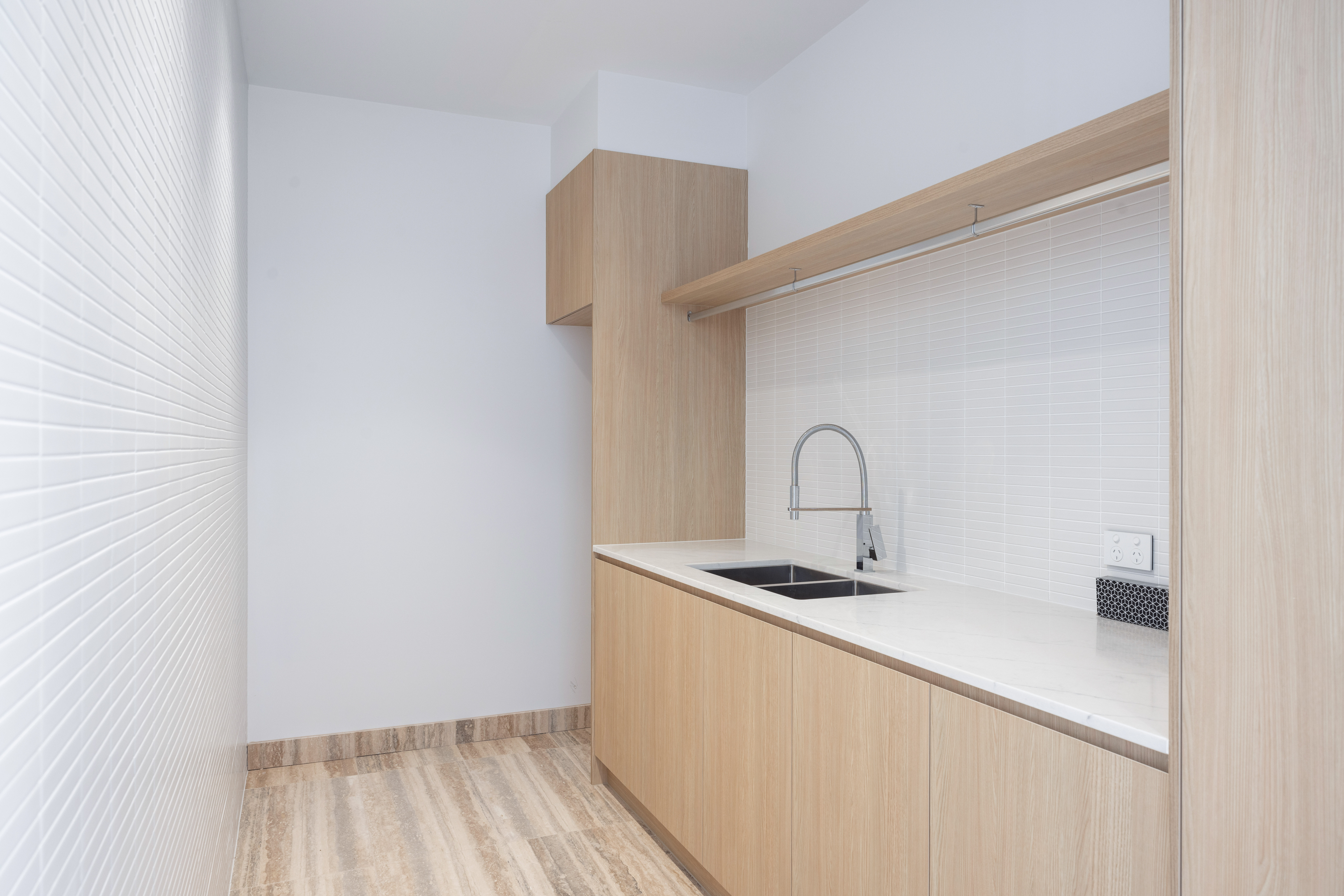 Behind the kitchen, a corridor leads you to the laundry and an optional 4th bedroom or home office, depending on your needs.