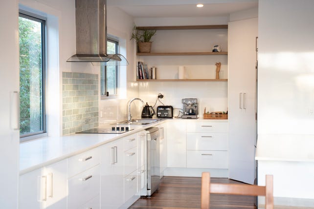 The existing home is a beautifully presented, with multiple living zones, modern bathrooms, and natural timber floors, the home is light-filled and welcoming. Upstairs, an open-plan living and dining area connects to a generous family kitchen and opens onto a wide balcony with panoramic ocean views.