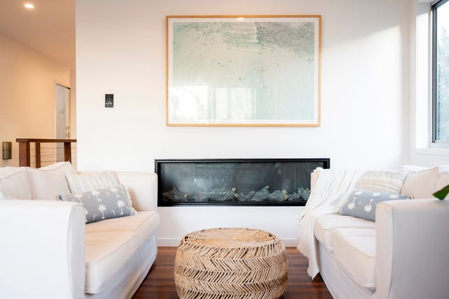 -Timber floors, ceiling fans, and electric fireplace