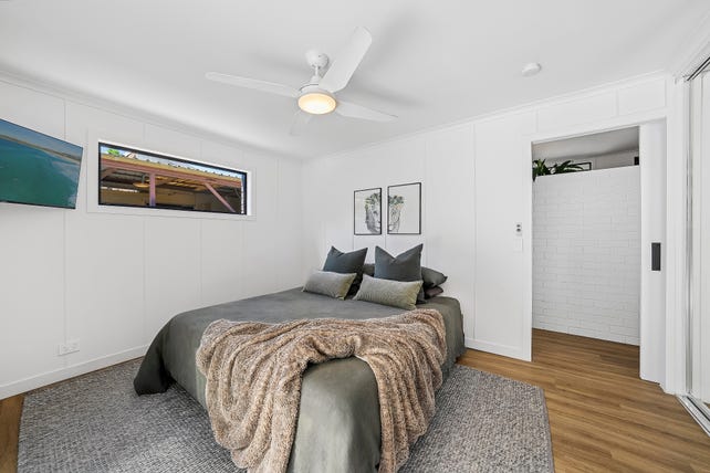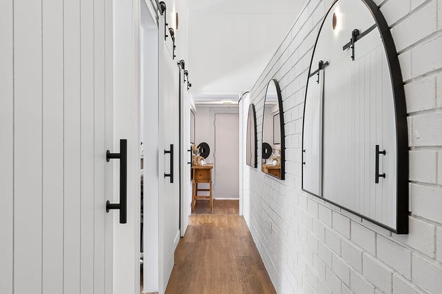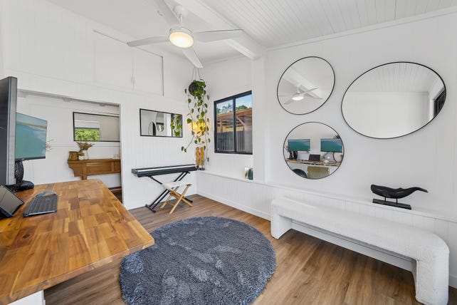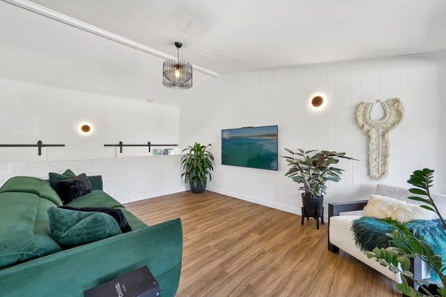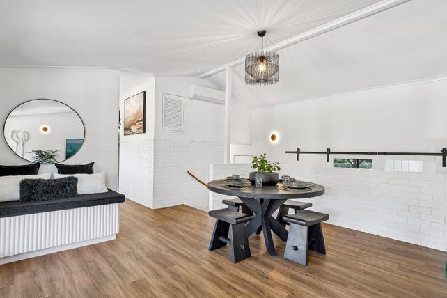 Superbly updated whilst retaining original features, soaring raked ceilings and timber and brick-lined walls have been whitewashed in favour of casual coastal elegance. Barn doors introduce a flexible layout highlighting open-plan living and dining with both north and south alfresco entertainment and a separate multi-purpose room showcasing the true flexibility of this home. The updated kitchen features modern appliances and shaker-style cabinetry, whilst zoned accommodations and extensive storage complement three generous bedrooms and a designer bathroom complete with green feature tile, dual vanity and frameless shower.