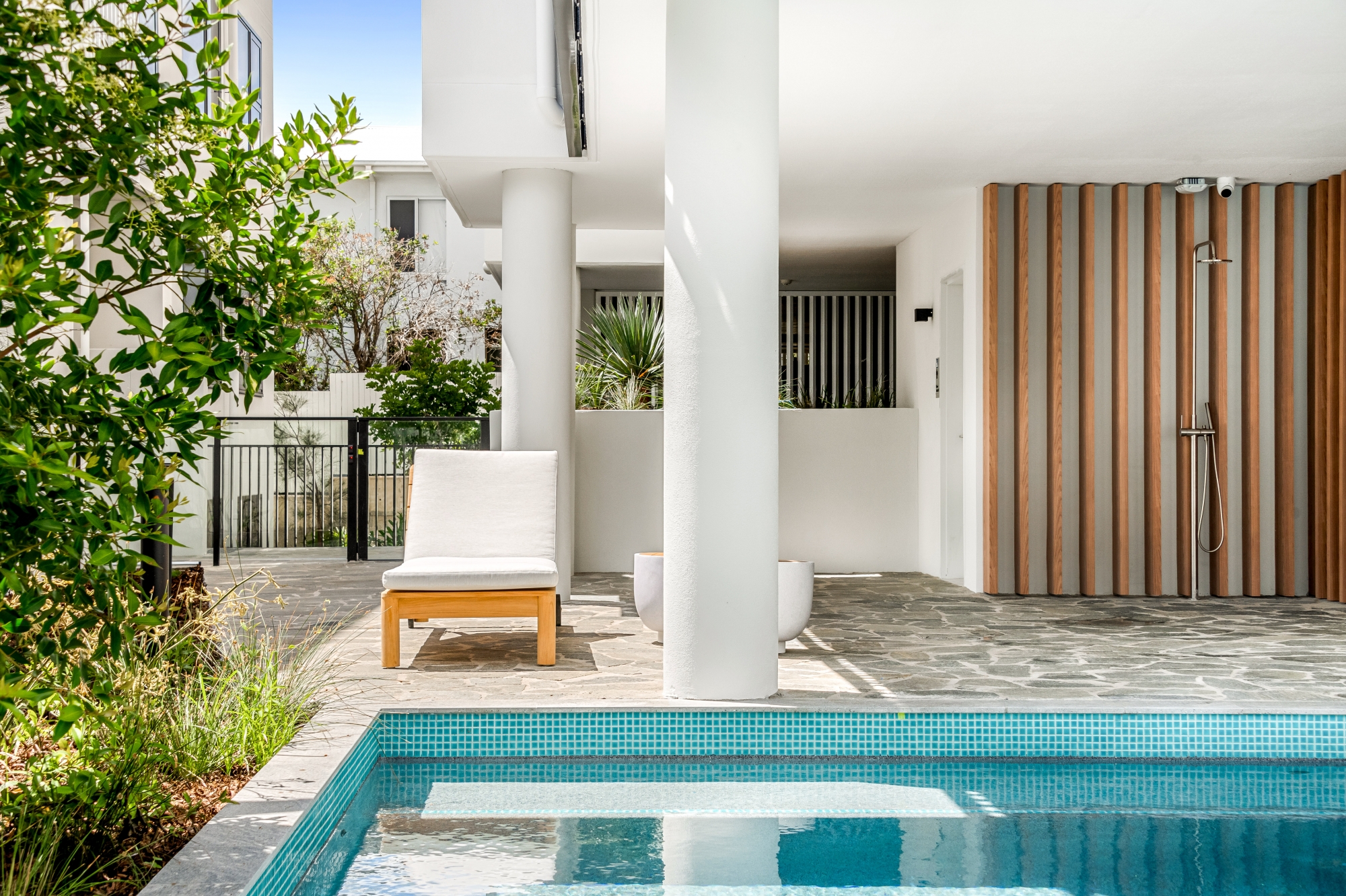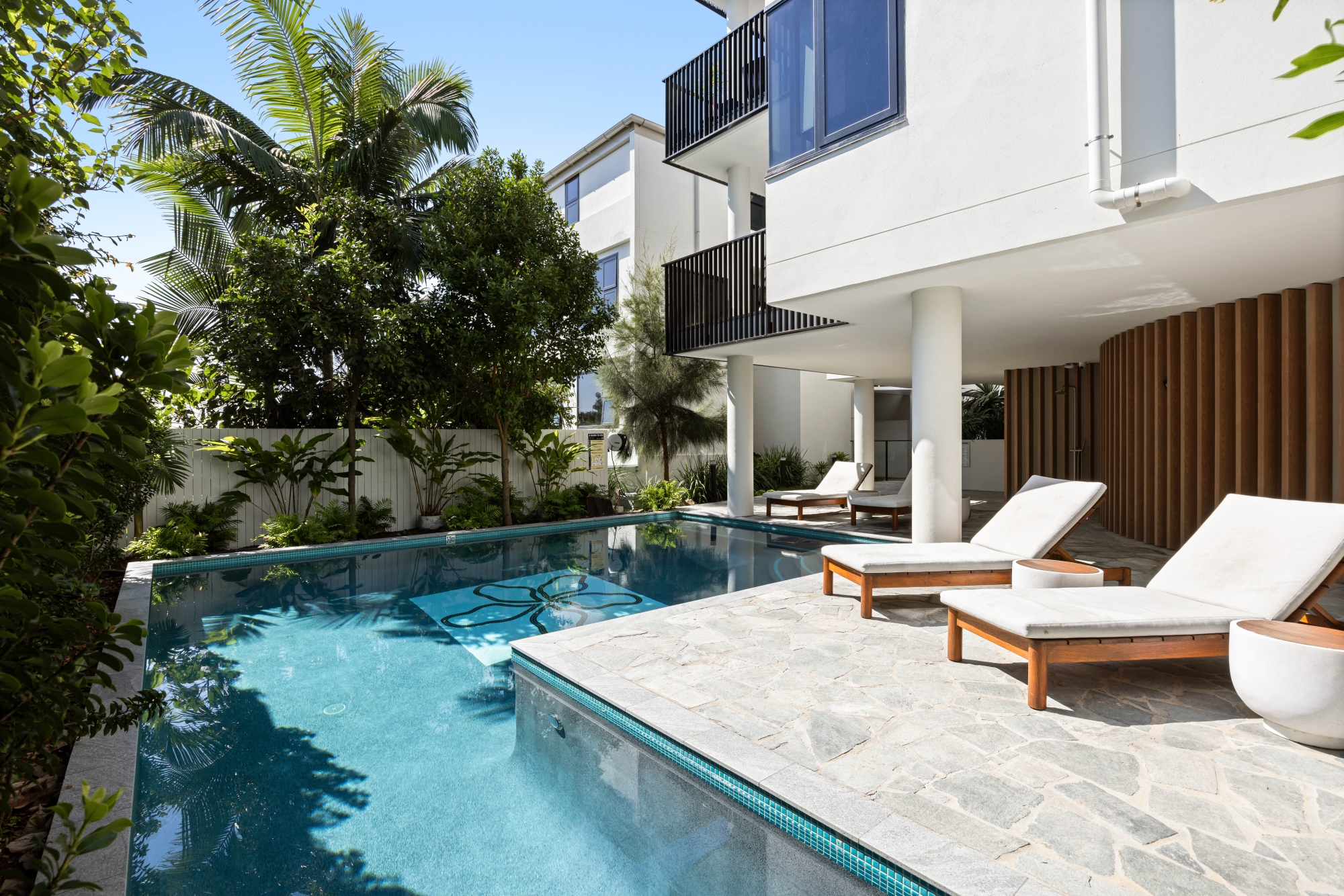 Residents of 'First Bay' enjoy access to communal facilities, including an in-ground resort pool, landscaped gardens, surfboard and bike storage, and an outdoor shower at the beachfront entry. This exclusive development by the award-winning Mosaic group has attracted the attention of high-end buyers across the nation.