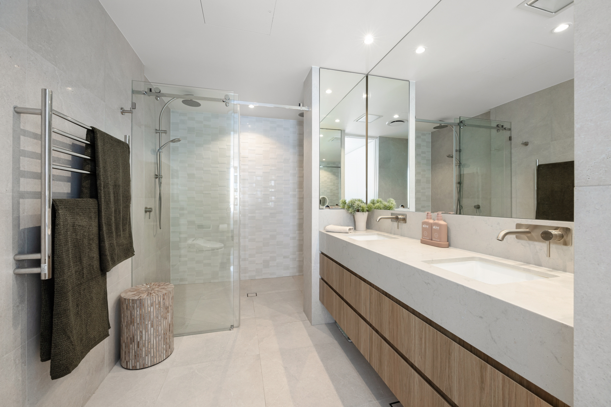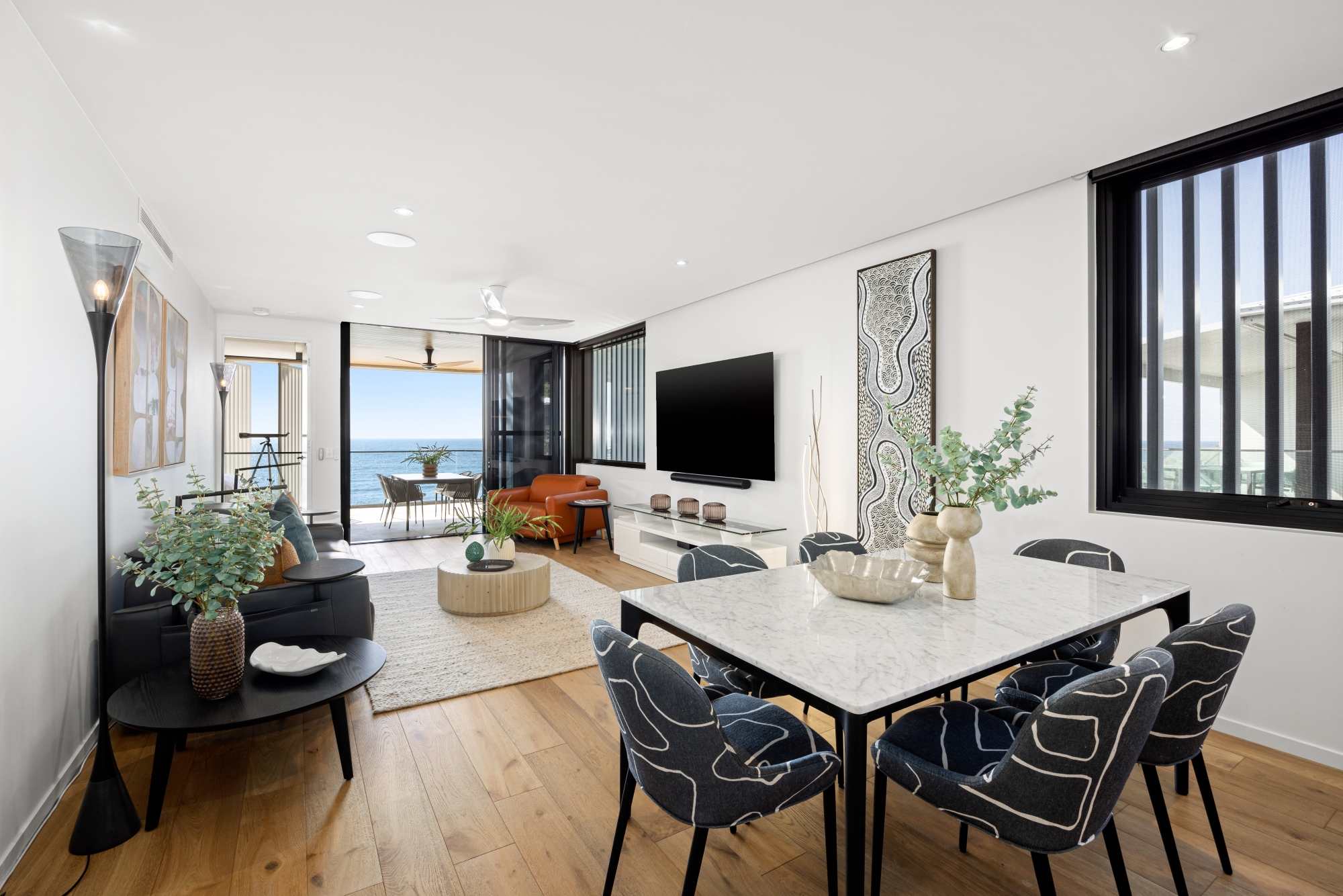 Summary of features: • North east facing 202 sqm executive apartment in ‘First Bay’ building • 180° sweeping ocean views, north to south • Three generous bedrooms and two luxury bathrooms • Spacious open-plan kitchen, living, and dining area • Luxury kitchen with Zip hot/cold tap, built-in wine fridge, integrated Liebherr fridge and freezer, and integrated dishwasher • NEFF convection/microwave/grill/steamer • NEFF oven with slide-and-hide feature, upgraded pendant lighting over the bench • Quality timber flooring throughout • Crimsafe security doors with motorized blinds • Ducted air-conditioning and ceiling fans throughout • Sonos sound system • Spacious master bedroom and ensuite with double shower, heated floor and towel rail, Royalet toilet, and Italian shower screen with ceiling heater • Separate home office with built-in storage and laundry • All cupboards throughout the property include extra shelving • Secure basement parking for three vehicles