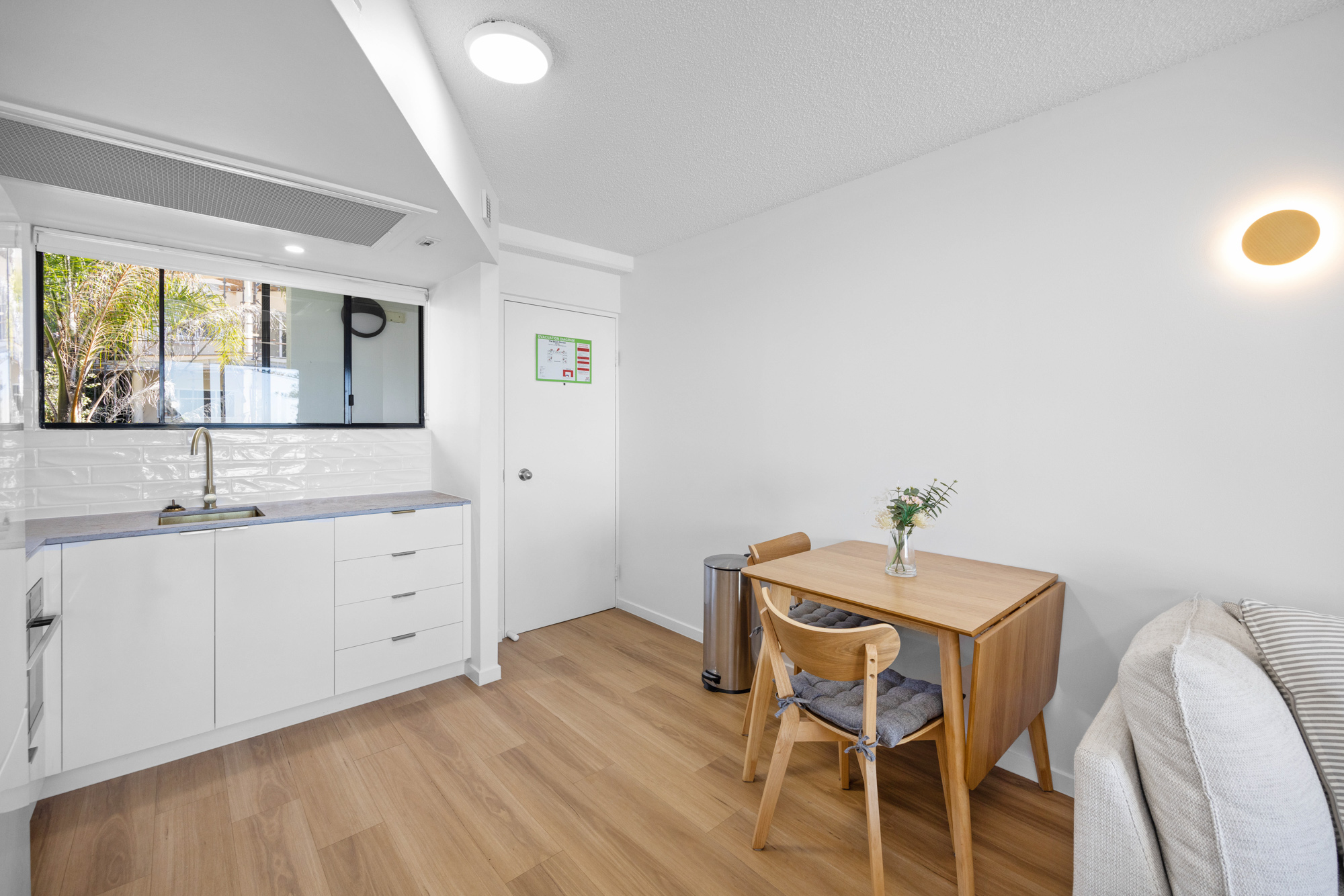 Modern renovation including bathroom, kitchen, flooring, modern fans and lighting, designer tapware Directly opposite the timber boardwalk to Coolum's patrolled beach or First Bay Located in the "Beach Retreat" complex set on an acre of beachfront land Ocean view east facing deck to capture the views and breezes. The apartment is offered for sale fully furnished