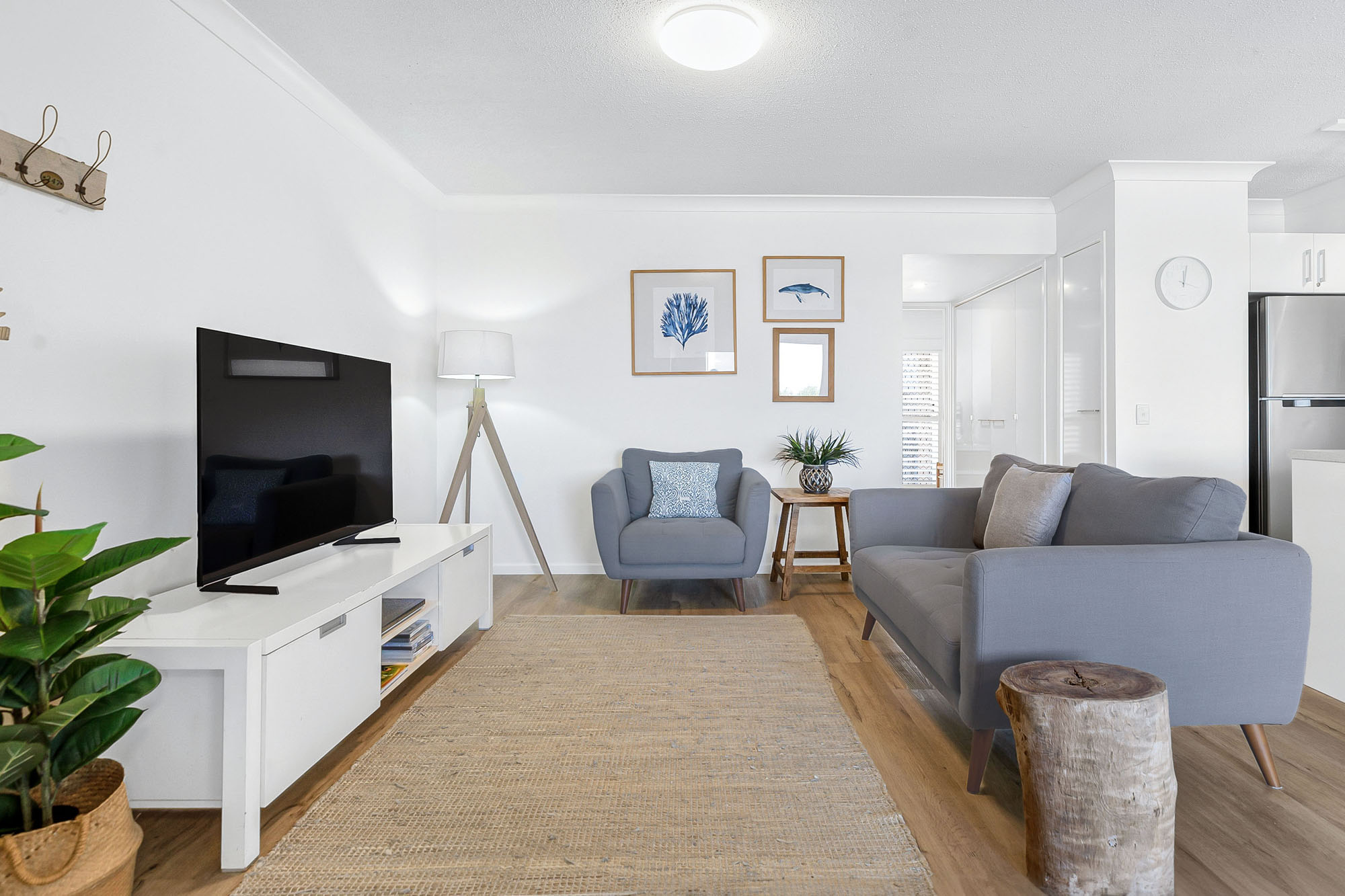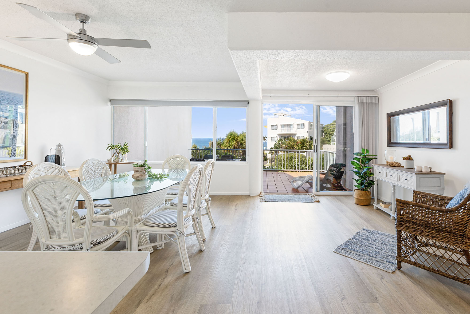 Ocean view living Directly opposite Point Perry you can walk out your front door for a morning swim at First Bay then stroll down Coolum's iconic boardwalk to grab your morning coffee from your favorite cafe. This light and airy unit features open plan living with