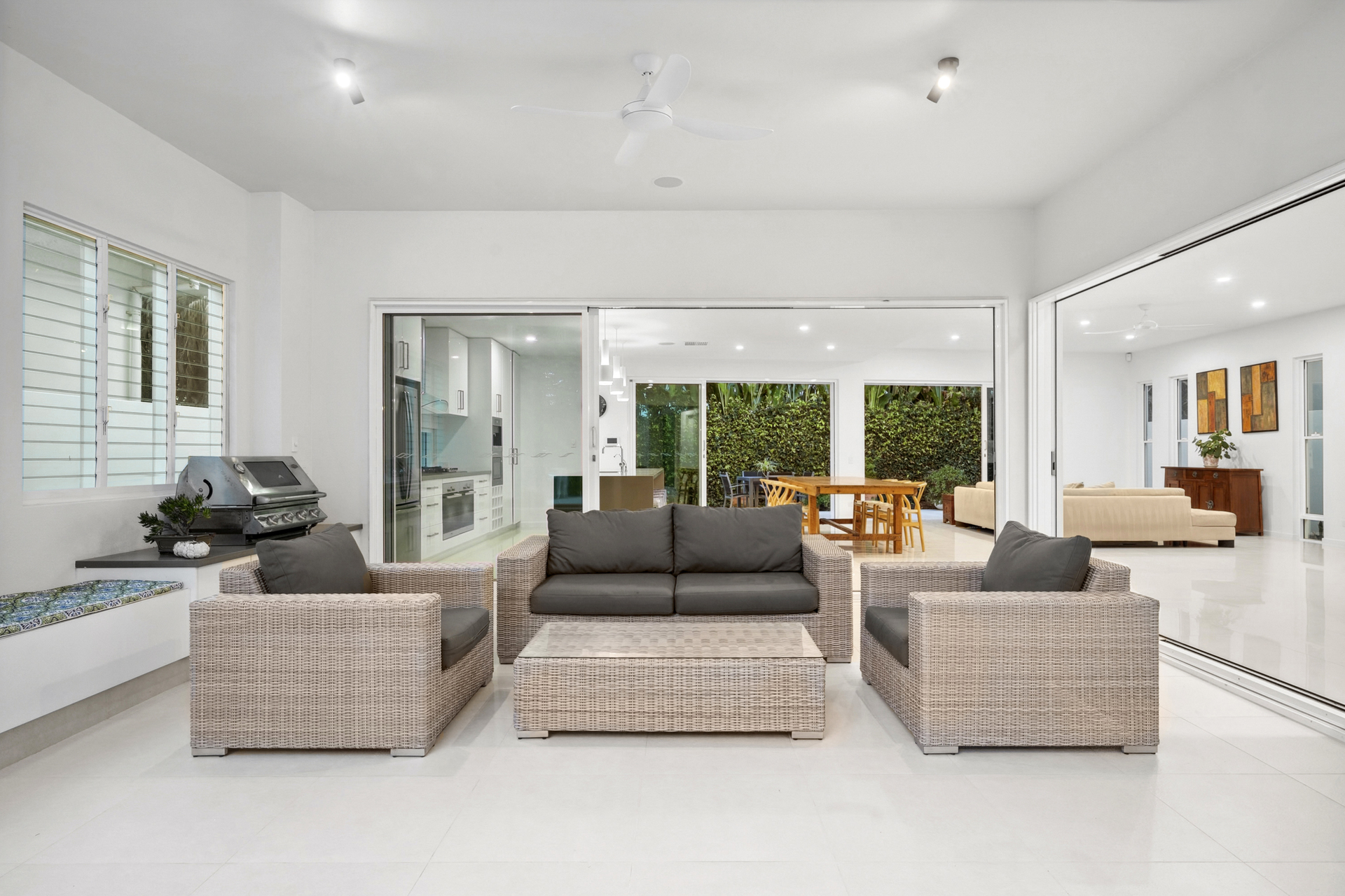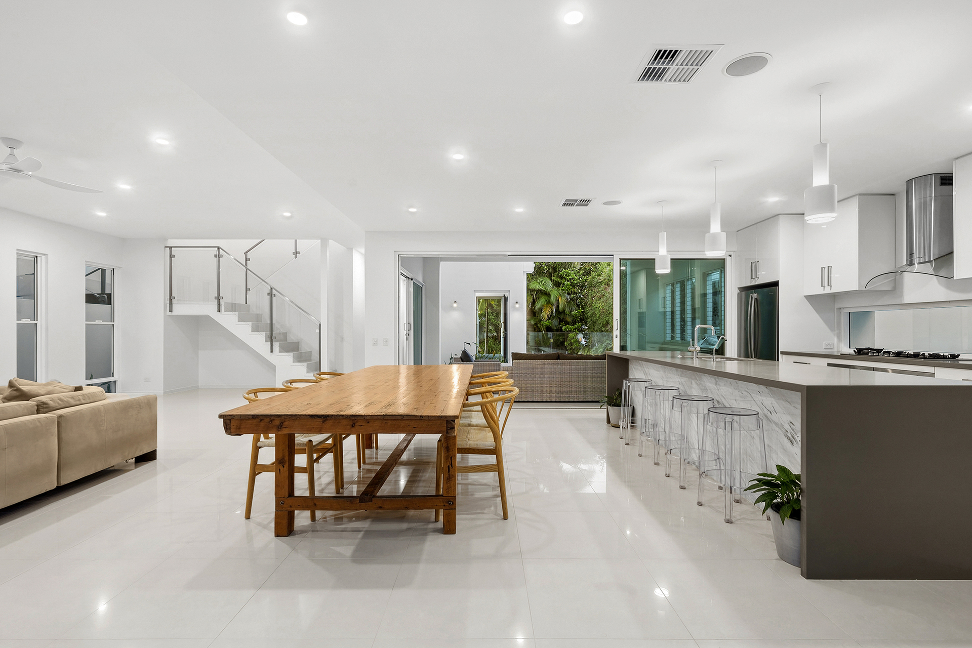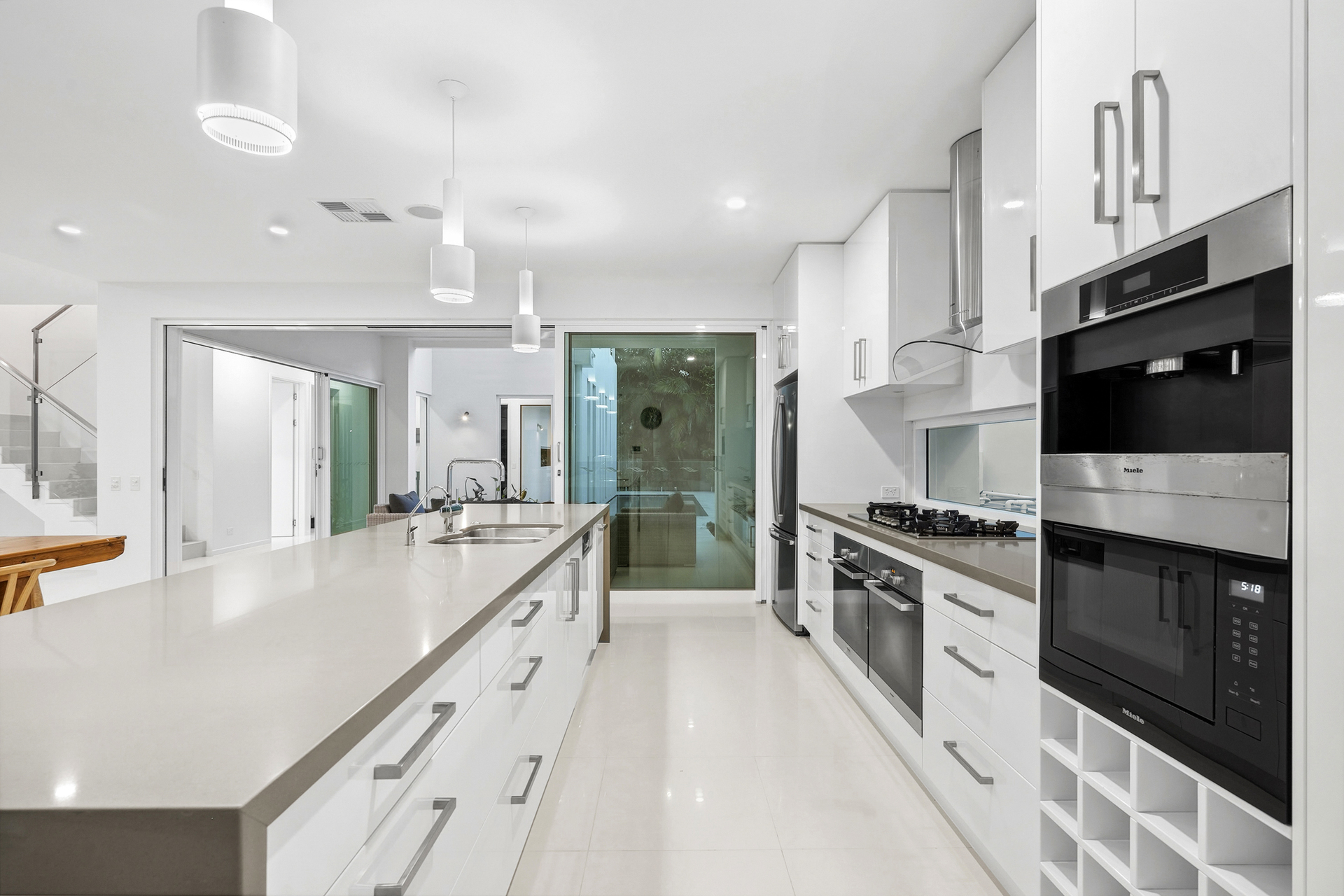 - 9 & 12 Foot Square Set Ceilings - Built in Miele Coffee Machine - 2 x 60cm Miele Ovens - Frameless Glass screens throughout - Multipurpose room/5th Bedroom - Open-plan living, a pool, spa, sauna and an entertainer's terrace with a BBQ - 2-Pac kitchen with soft-close cabinetry, marble and high-end Miele appliances - 24 KW Samsung Reverse Cycle Ducted air-con, 10.36kW solar, 410 solar hot water low line split system, a pool heater - Walk to the beach and so close to golf courses, shops and restaurants