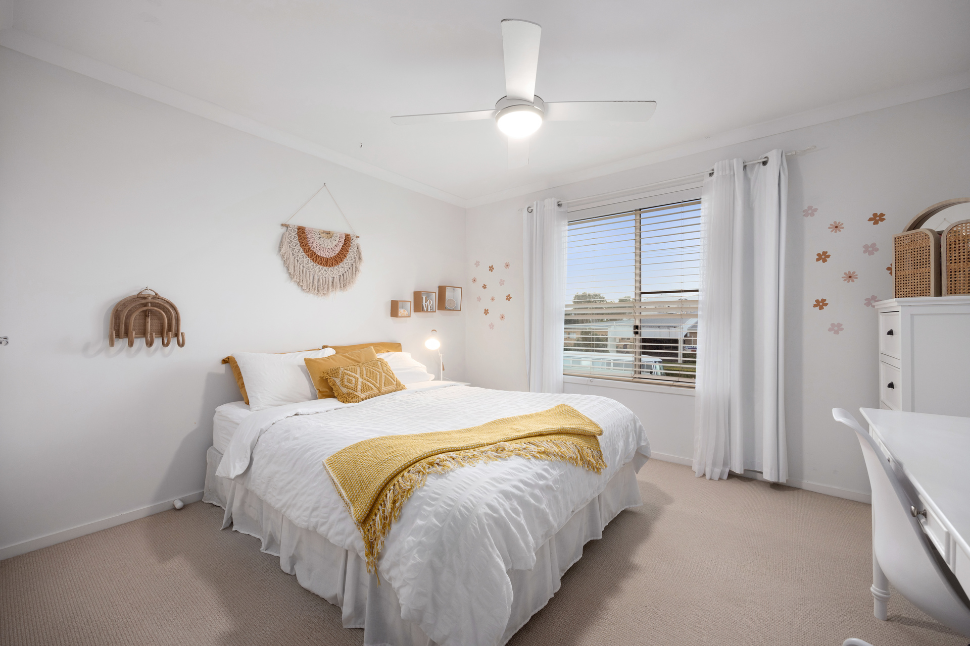 The spacious design provides multiple living areas, including a family room and media room, allowing everyone in the household to find their own space to relax. The open-plan living area is bathed in natural light, thanks to plantation shutters, while ceiling fans throughout and split-system air-conditioning in the master bedroom and living area ensure comfort all year round.