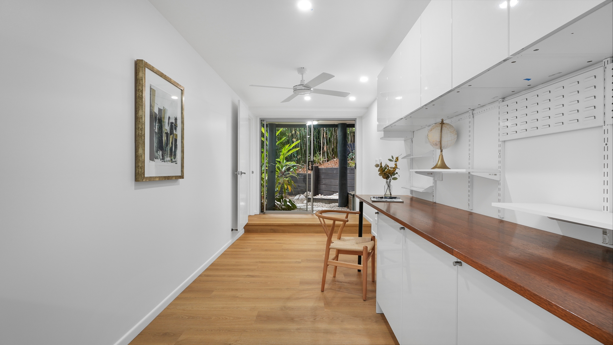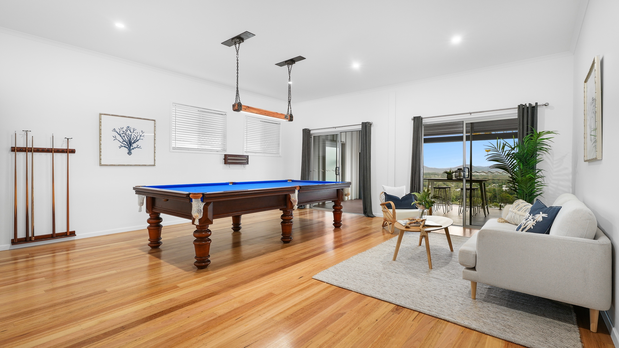 ~ Unobstructed views of Coolum Beach to Noosa and out into the Hinterland ~ Spacious secondary deck with azure ocean views ~ Feature pool and oversized deck with absolute privacy ~ Spa on the Deck overlooking the ocean ~ Gourmet kitchen, with engineered Caesar stone and European appliances ~ Blackbutt polished timber floors throughout ~ Master retreat with private balcony; oversized, hotel-like ensuite and spacious walk-in robe ~ Work or study from home in the purpose-designed office with ample custom cabinetry ~ Games room with pool table ~ Practically integrated laundry, opening to a drying deck ~ Lift access to seamlessly move between floors ~ Dumb waiter from your car to the pantry ~ Substantial storage, workshop and enclosed garage for two cars and 3 extra cars in the parking bay.
