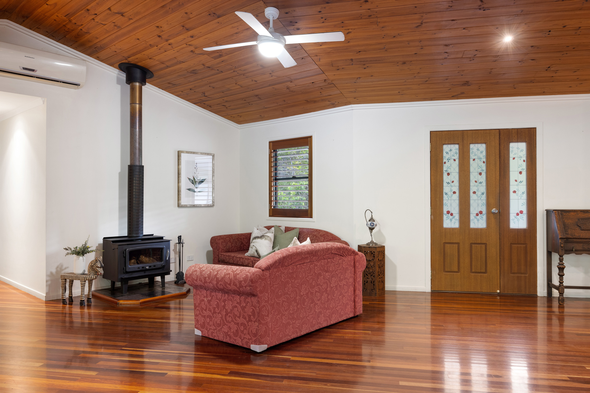 Outside, the sparkling shaded swimming pool is framed by nature's beauty, creating a peaceful sanctuary for relaxation. The sprawling grounds feature an abundance of fruit trees-bananas, lemons, apples, mangos, and macadamias-adding to the property's charm. A fully fenced section of acreage opens up endless possibilities, from rental income potential to housing horses or chickens. With space to add a granny flat, the future holds even more opportunities.