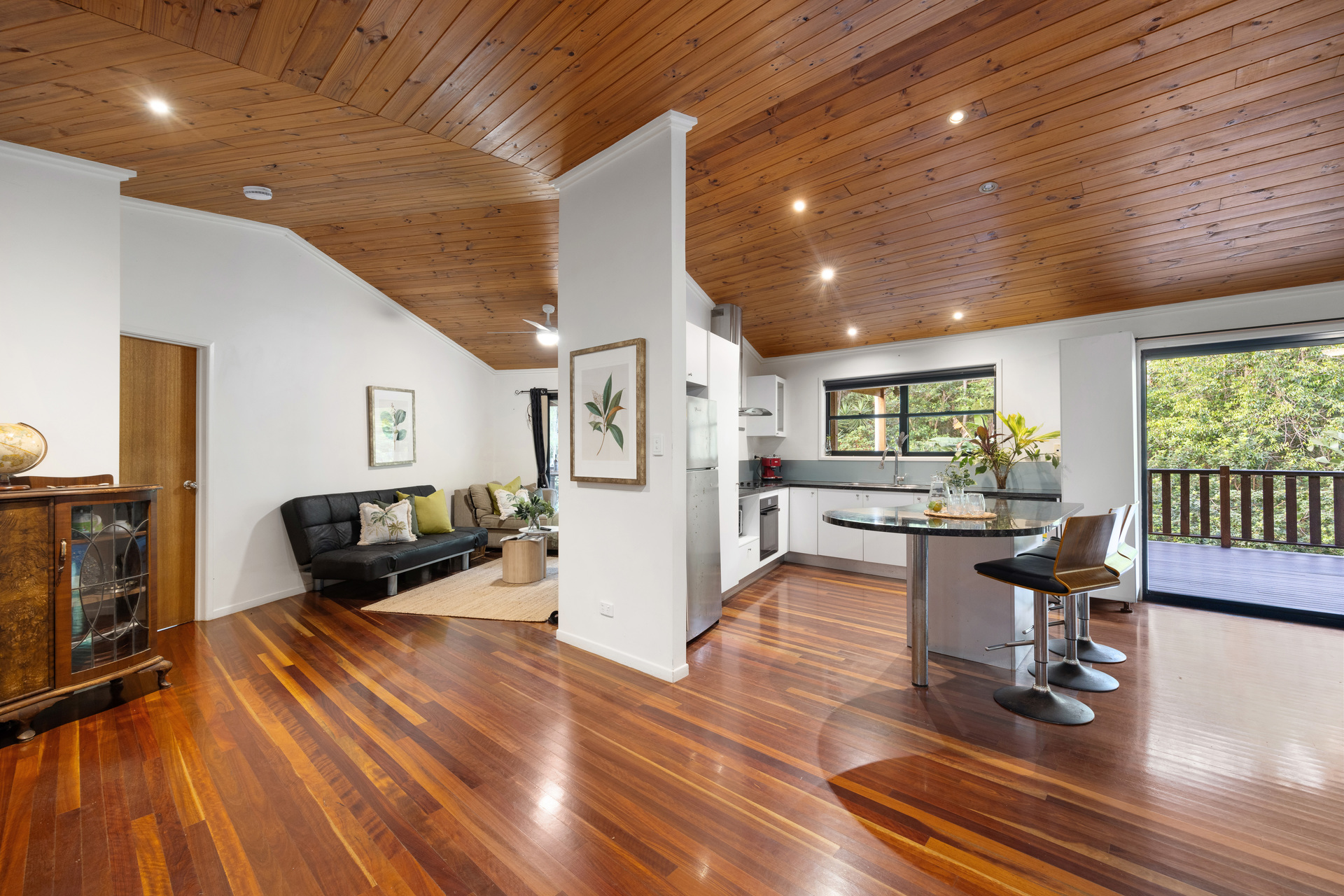 With only one neighbouring property, this elevated home offers a rare sense of seclusion, enhanced by the gentle breezes and captivating bushland views from the expansive wrap-around deck-a perfect place to unwind or entertain.
