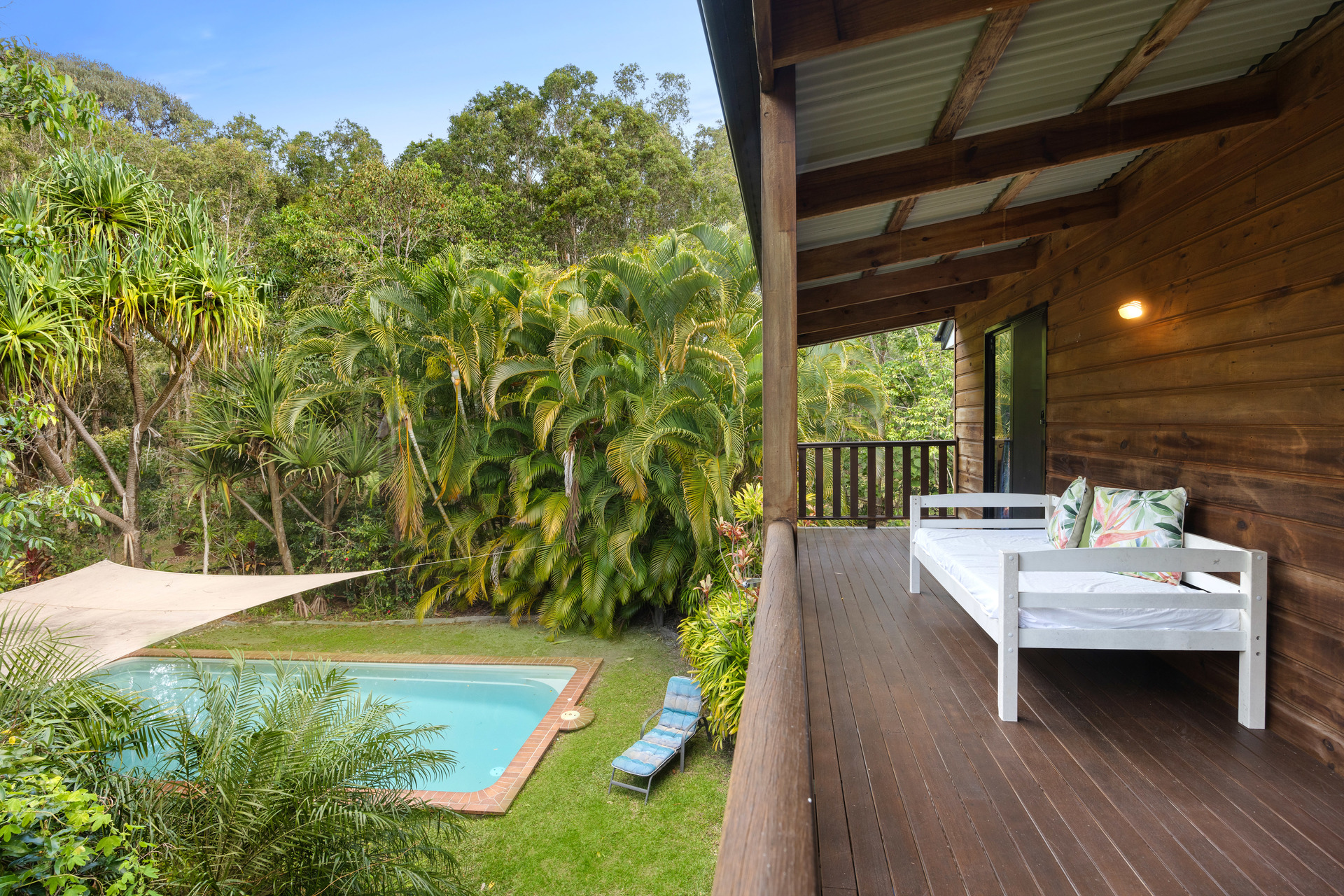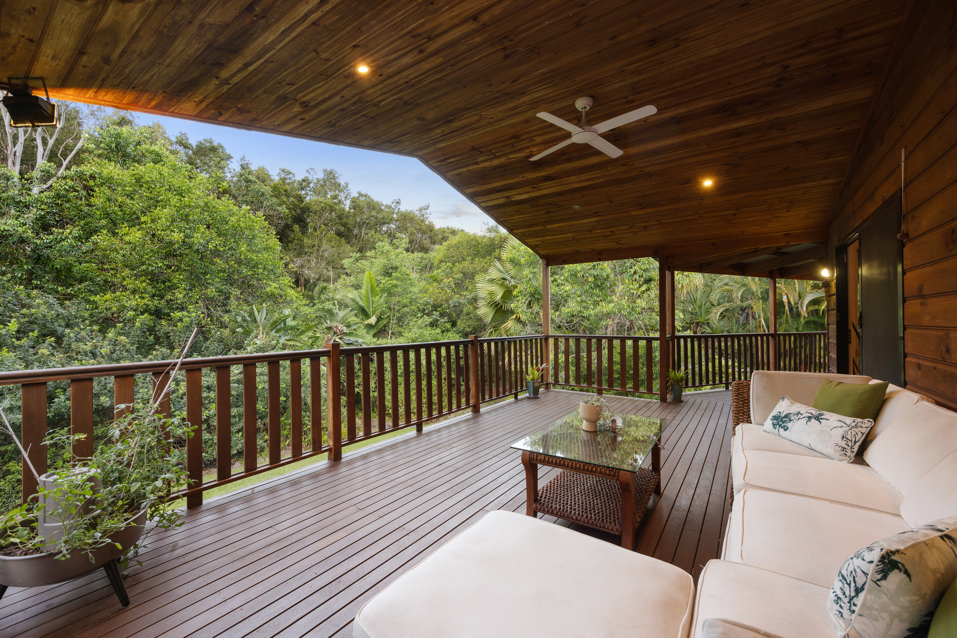 Features at a glance: - 5 Bedrooms, 3 Bathrooms - Lounge with pot belly fireplace - Air conditioning and ceiling fans throughout - Large elevated wrap around deck with bush views - Home office/business/study with bathroom - 3 car accommodation under house, plus caravan railer storage - 25,000L water tank - Swimming pool - Fruit trees (banana, lemon, apple, mango, macadamia, etc.) - Fenced acreage for rental or animal use - Space for a granny flat - Coolum Christian College just a mere 2km