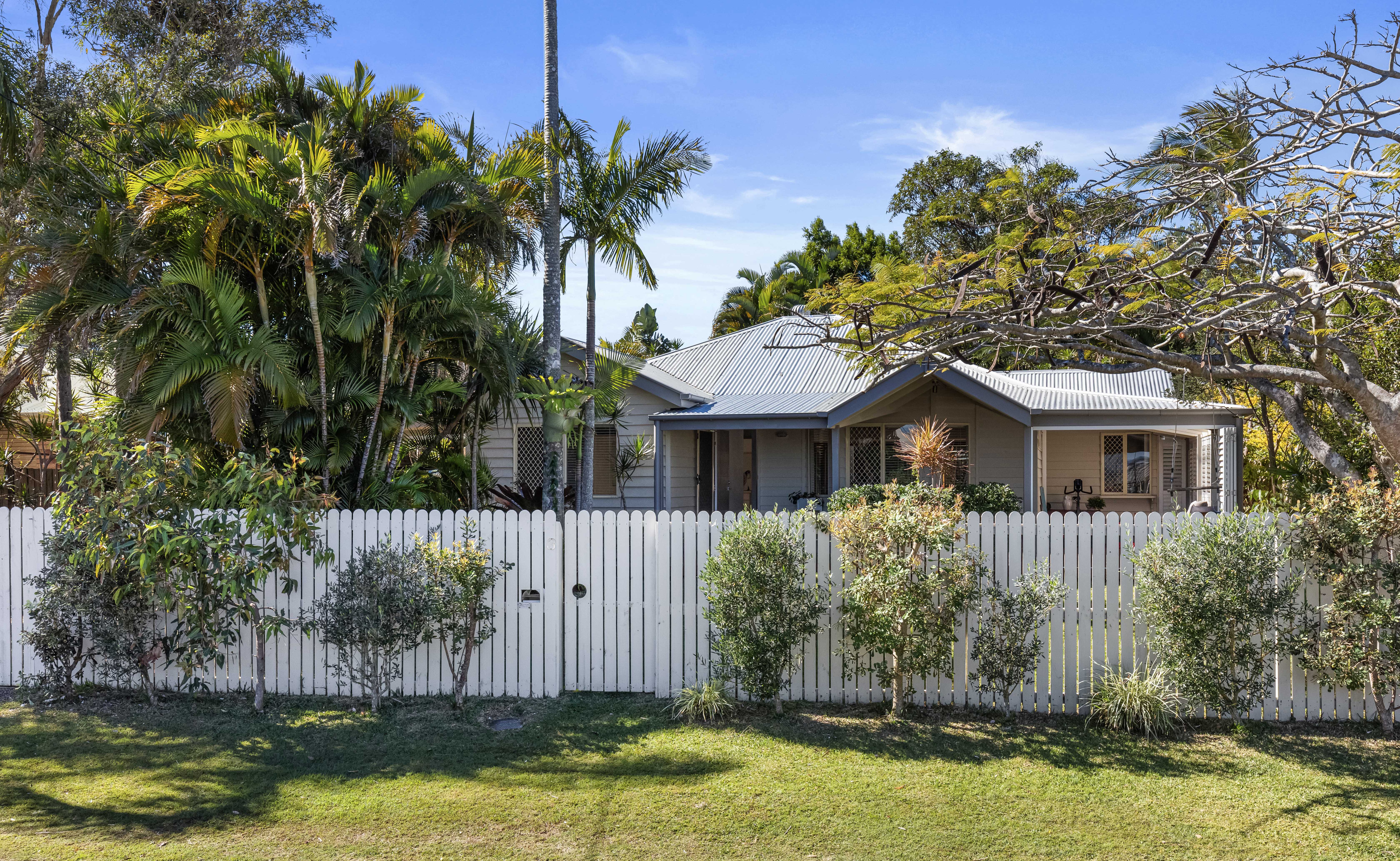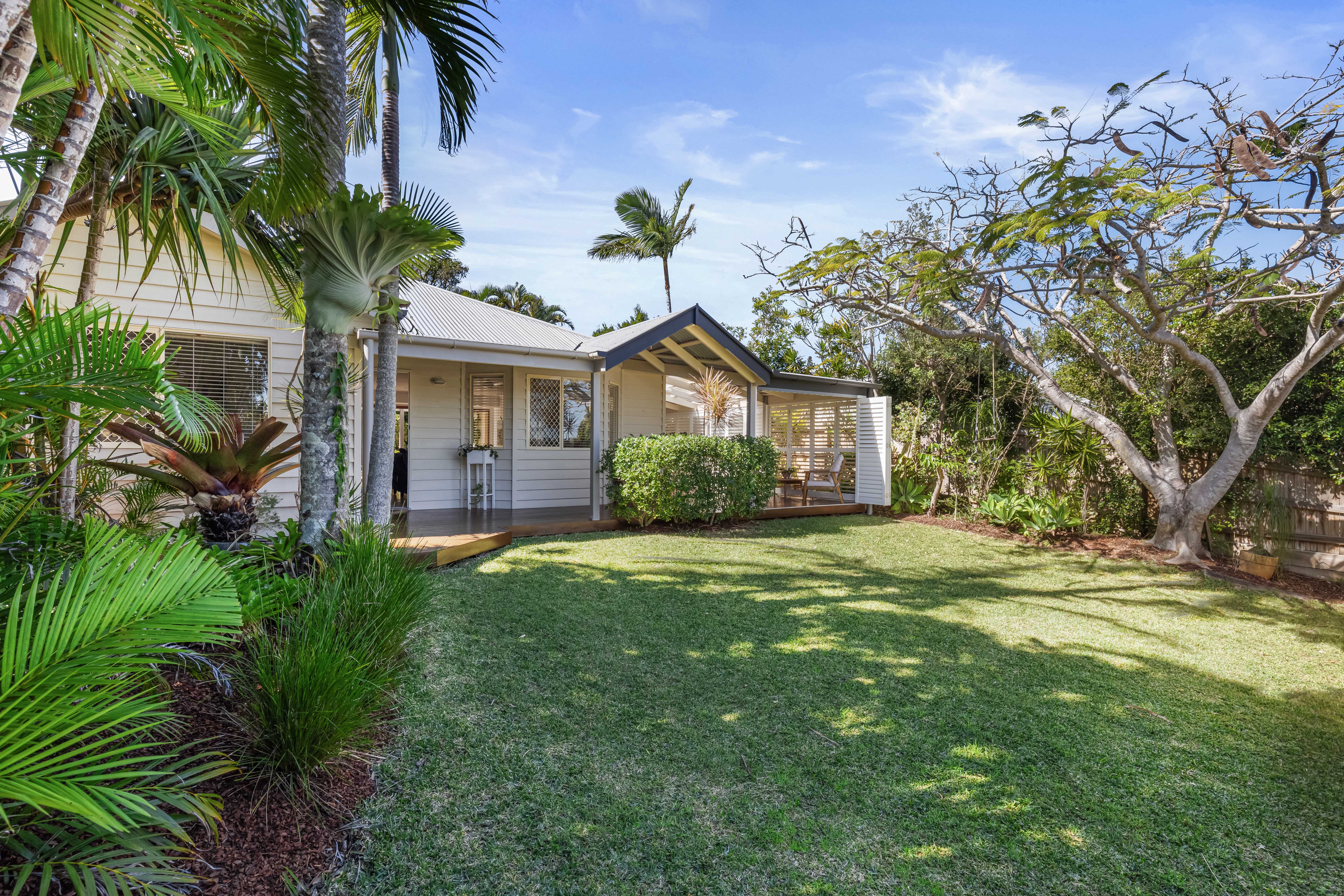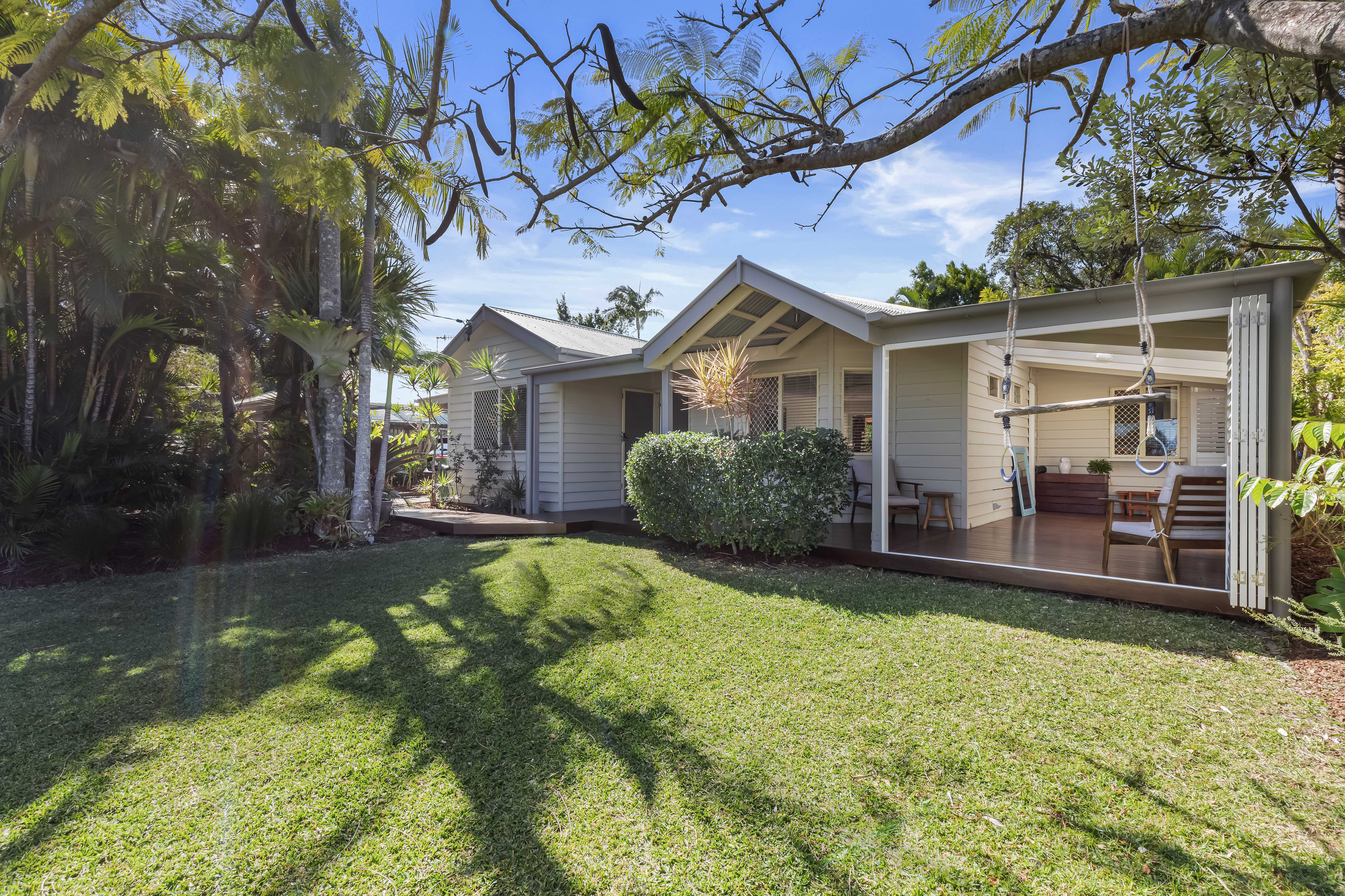 A Cottage Style Home & A Beachside Lifestyle This single level 'cottage style' residence is absolutely charming and has a real sense of warmth and homeliness, with that quintessential weatherboard finish and covered verandas. Parakeet Crescent is a very quiet street and close to the National Park, so there is an abundance of local birdlife, and you can see the sun setting over the hinterland in the distance. Being 650m to the nearest beach access, you can pop down for an early morning surf without taking the car or treat the pooch for an afternoon walk in the off-leash dog area. The home is centred on the 623sqm block offering a fully enclosed front yard and backyard, which is nicely shaded by the tall surrounding trees and a feature poinciana tree, which blooms in red flowers during the summertime. There is an equal amount of outdoor entertaining space as there is internal living which is perfect proportion for the warmer coastal climate.