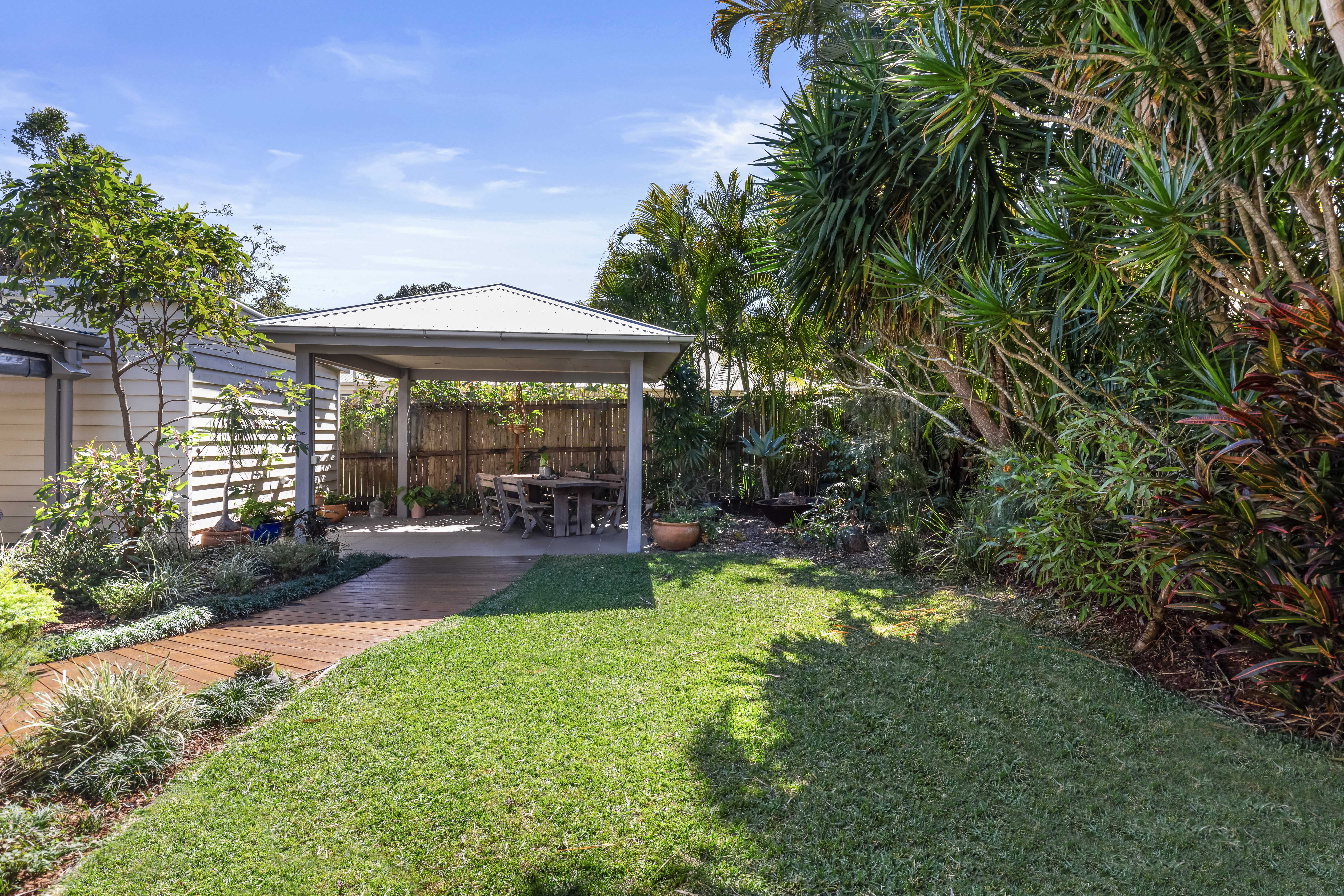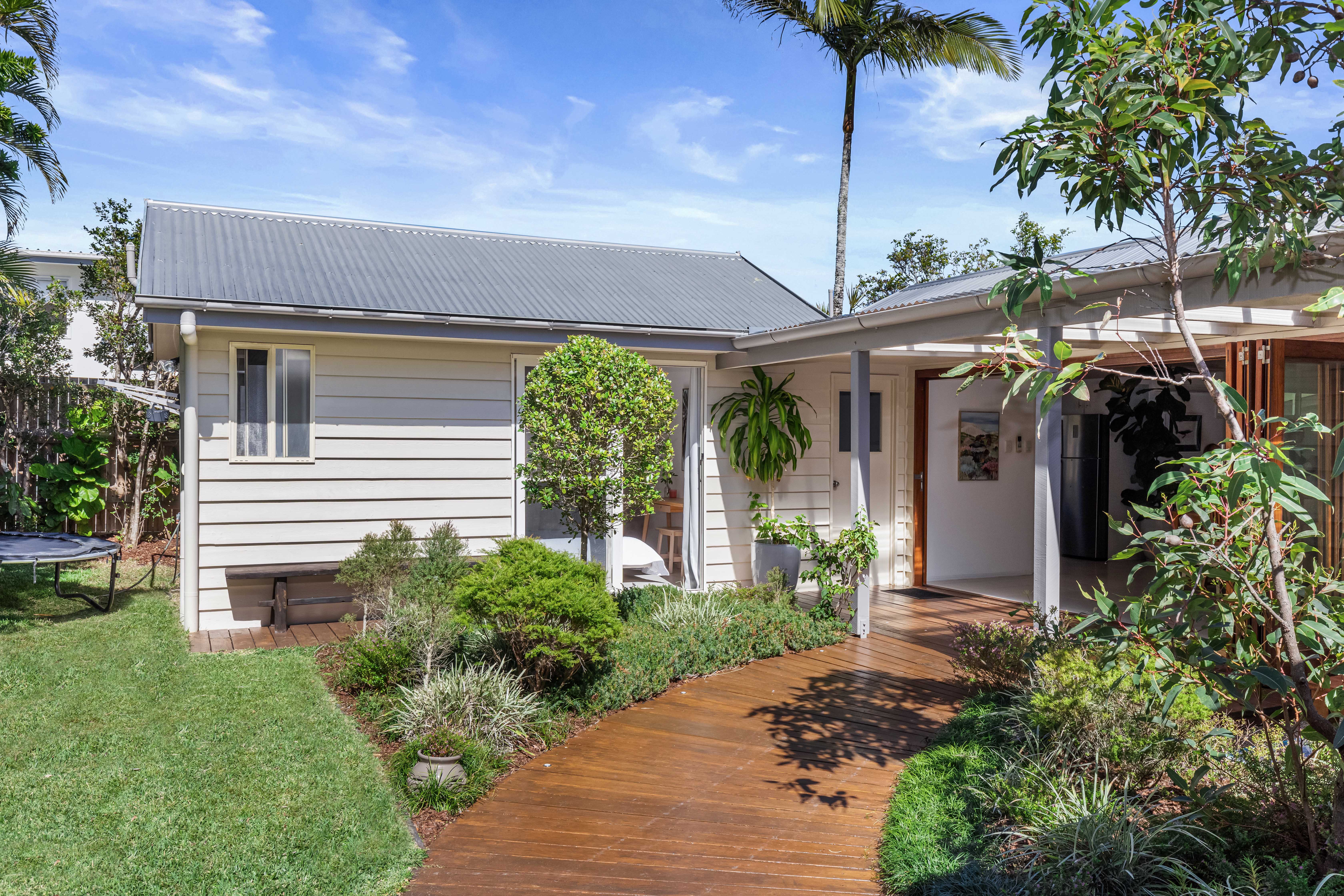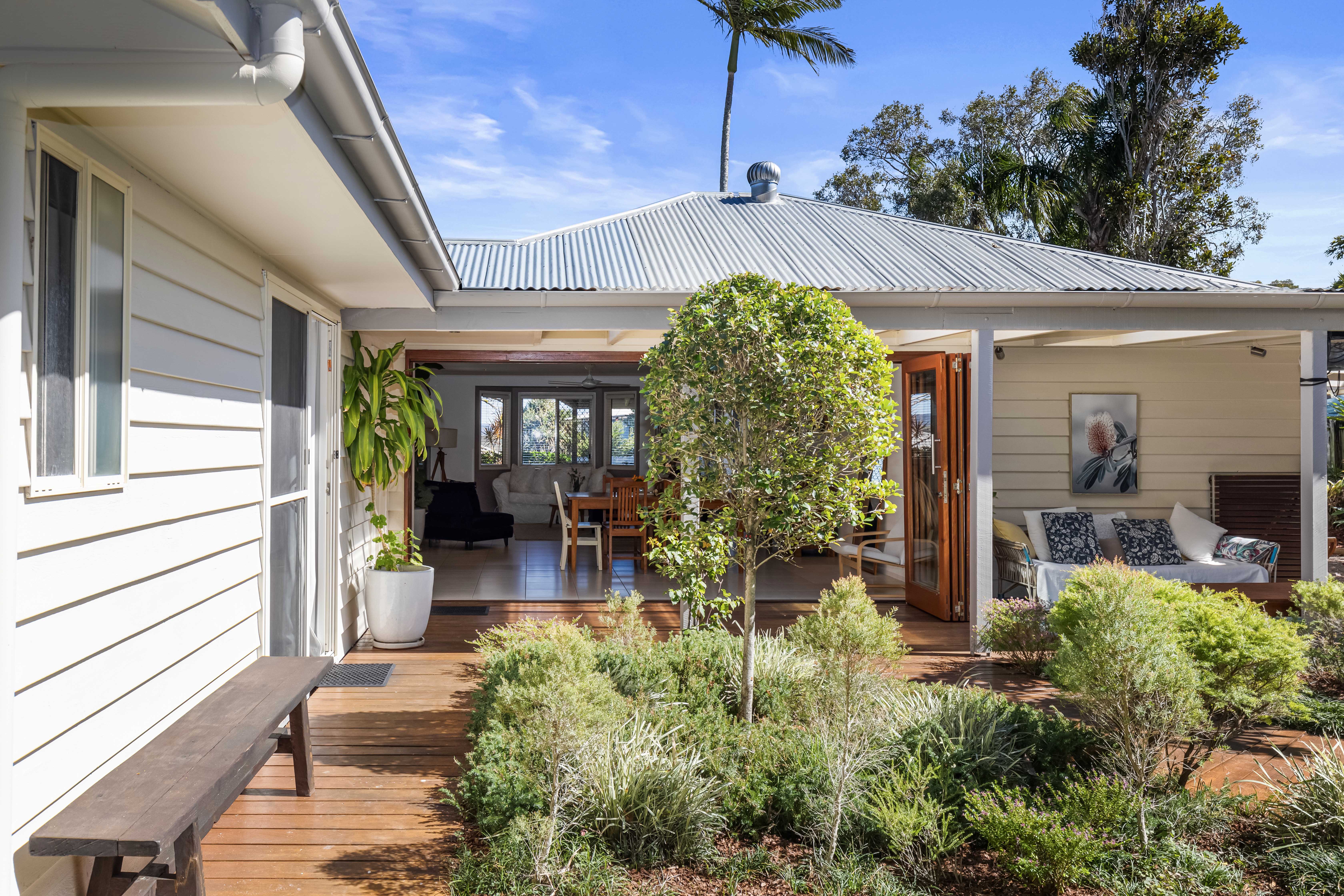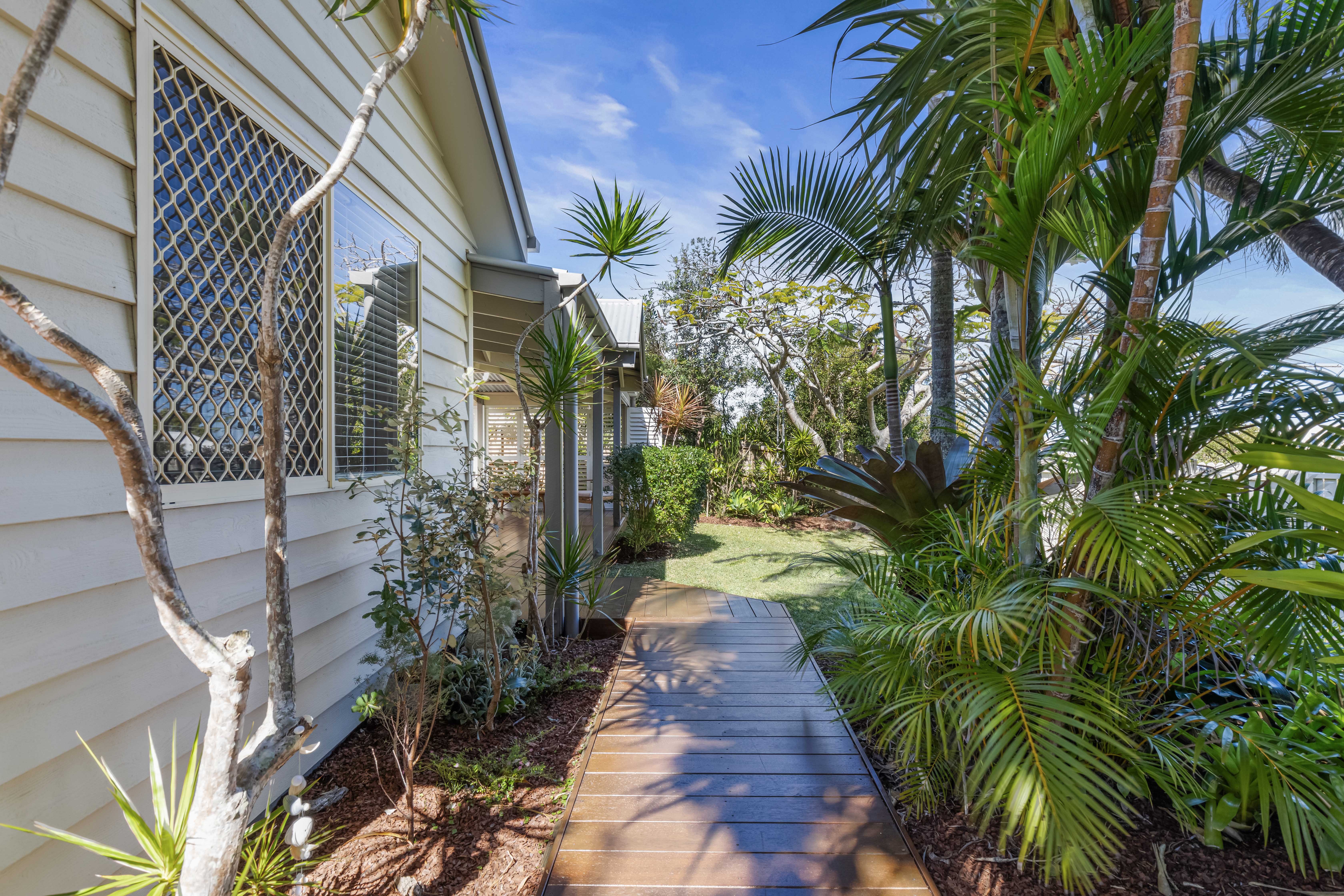 A Cottage Style Home & A Beachside Lifestyle This single level 'cottage style' residence is absolutely charming and has a real sense of warmth and homeliness, with that quintessential weatherboard finish and covered verandas. Parakeet Crescent is a very quiet street and close to the National Park, so there is an abundance of local birdlife, and you can see the sun setting over the hinterland in the distance. Being 650m to the nearest beach access, you can pop down for an early morning surf without taking the car or treat the pooch for an afternoon walk in the off-leash dog area. The home is centred on the 623sqm block offering a fully enclosed front yard and backyard, which is nicely shaded by the tall surrounding trees and a feature poinciana tree, which blooms in red flowers during the summertime. There is an equal amount of outdoor entertaining space as there is internal living which is perfect proportion for the warmer coastal climate.