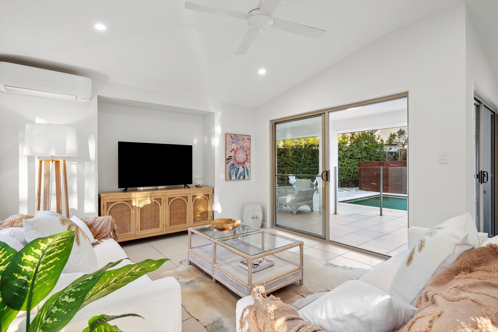 - Beautiful water outlooks and natural light, high ceilings, and an indoor-outdoor flow - Undercover poolside alfresco entertaining terrace and a fire pit area - 3 living rooms including 2 spacious family living areas beneath high ceilings - North-facing poolside master suite with his-and-hers robes and a double-vanity ensuite - Children's wing with a sitting room/play area and a powder room near the pool - Stone kitchen with s/steel appliances including a gas cooktop and a new dishwasher - Picture windows, plantation shutters, split system air-conditioners, ceiling fans - Repainted exterior & roof, and a remote double garage with internal entry - Near bus stops, a local dog park & duck pond, and the Peregian Springs Golf Course