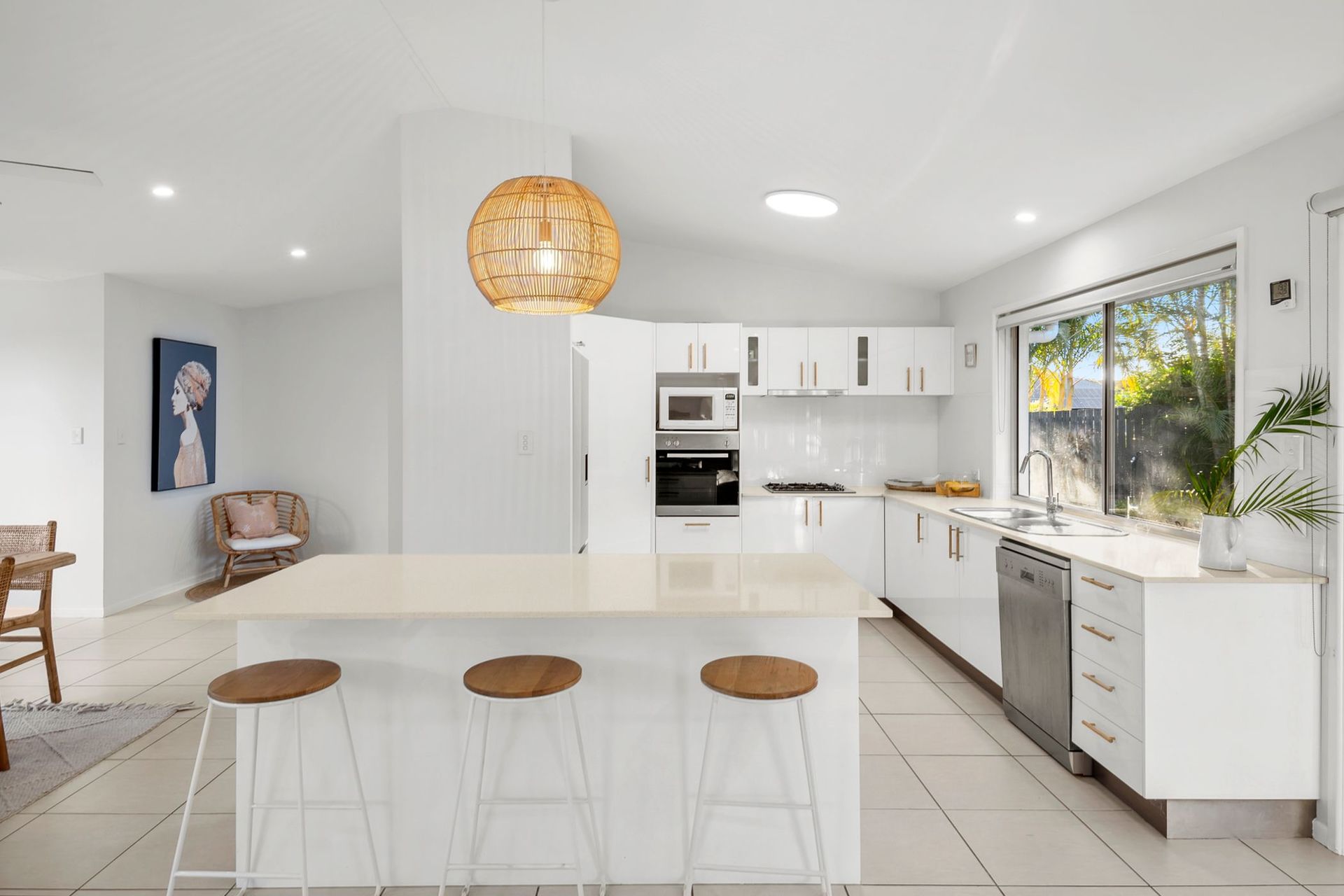 From the plantation shutters to the beachy tones and the poolside alfresco entertaining, this is an idyllic summer house that bathes in sunlight all day within easy reach of the coast. The 763m2 (approx) allotment rests in the arc of a small court near bus stops, a local dog park and duck pond, and the Peregian Springs Golf Course.