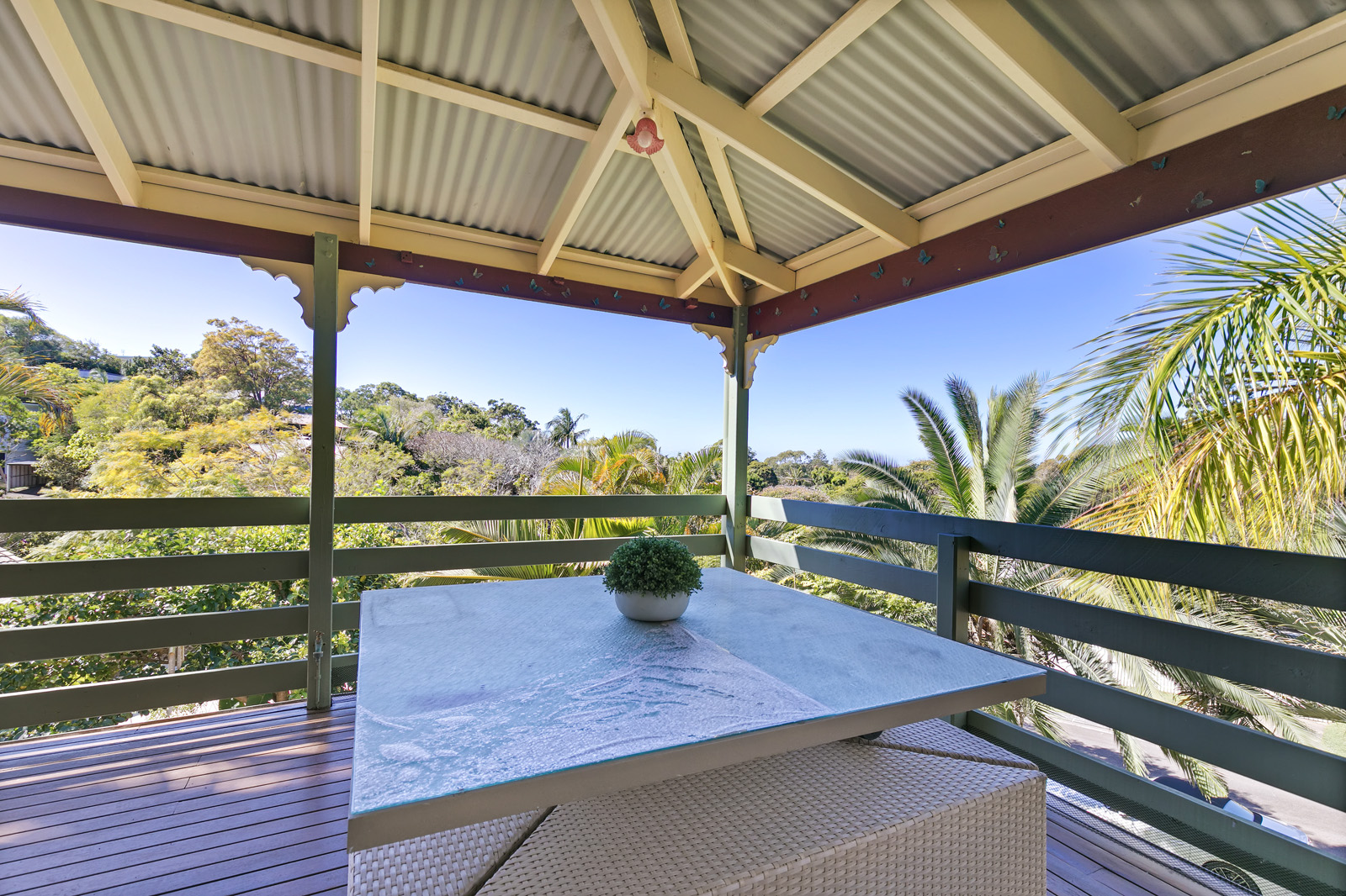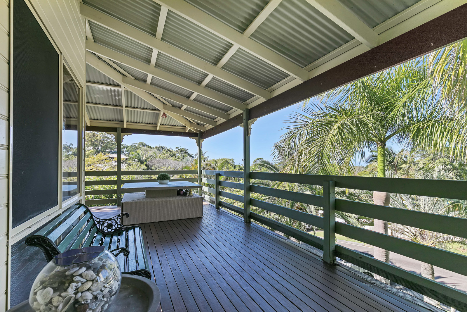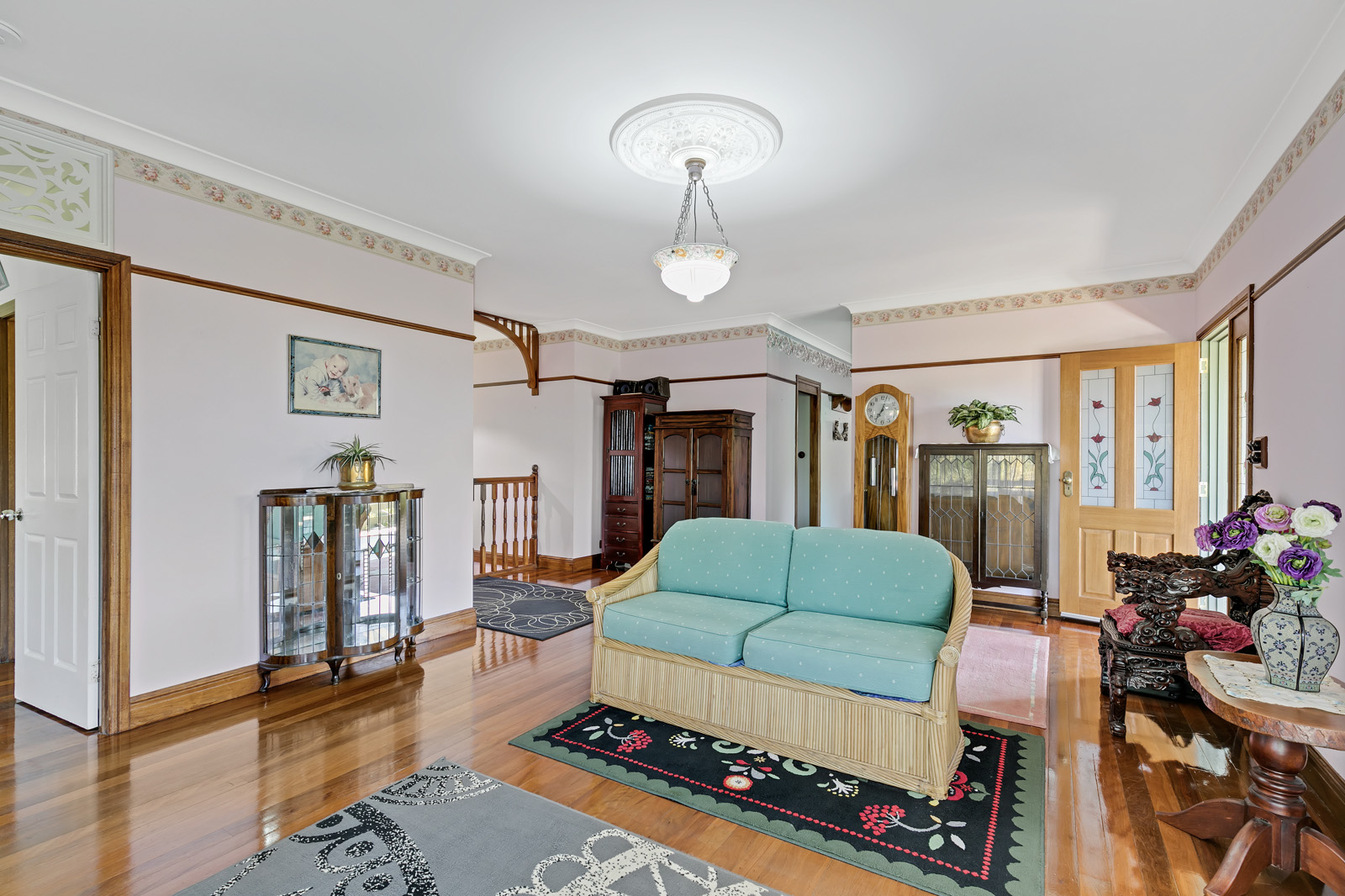Built in the Queenslander design of a 1920s plantation home, the property showcases exquisite stained glass doors, polished Tasmanian oak floors and high ceilings.