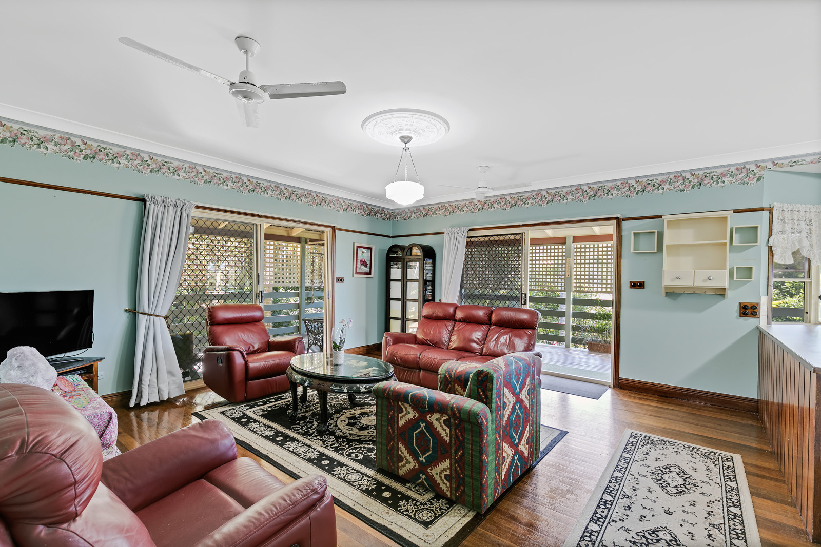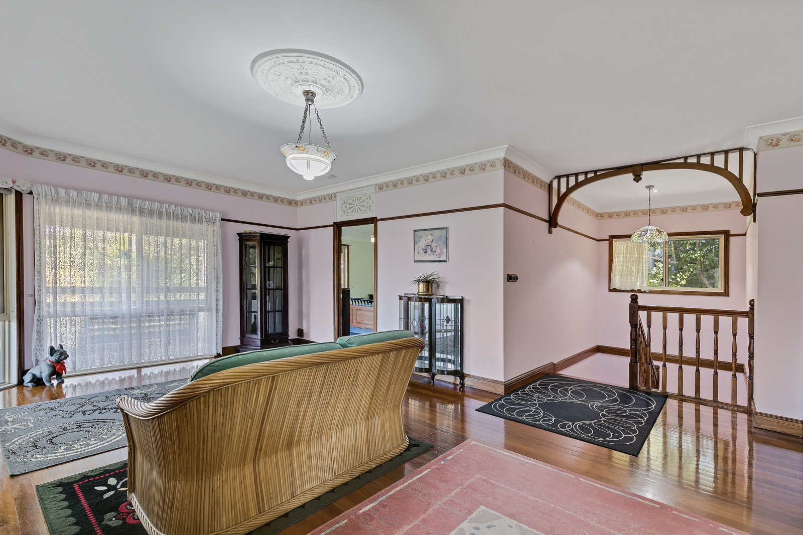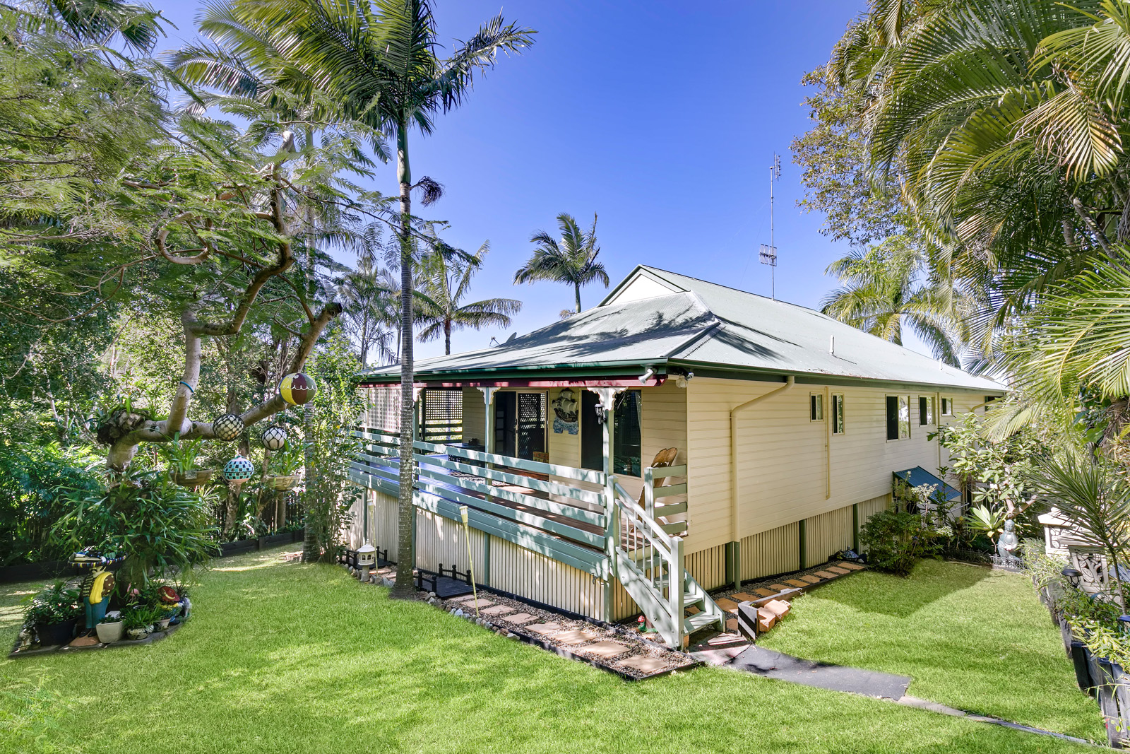 Built in the Queenslander design of a 1920s plantation home, the property showcases exquisite stained glass doors, polished Tasmanian oak floors and high ceilings.