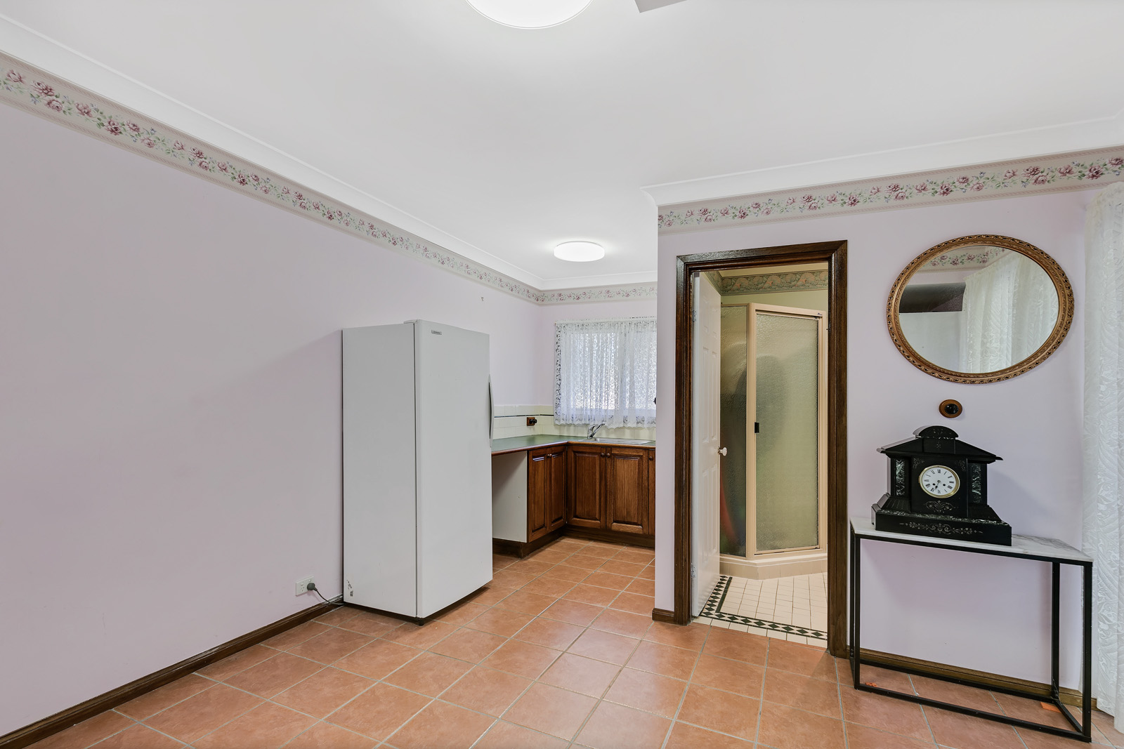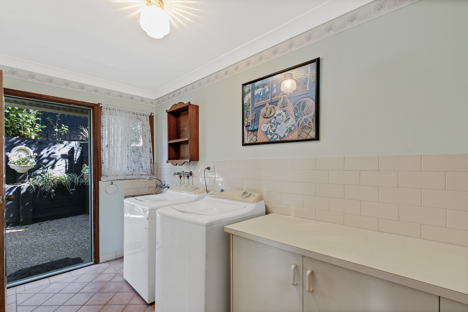 As well as a 3 car lock up garage and huge workshop on the ground level, there is also a lovely self contained granny flat, with its own kitchen, bathroom, entrance and glass sliders that open out onto a private courtyard.