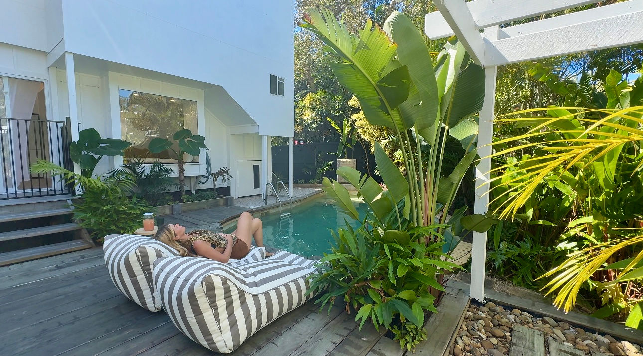 The Luxe Coastal Retreat offers a unique suburban escape, allowing you to fully unwind and connect with the essence of nature right in your own backyard. Thoughtfully renovated with wellness in mind, this coastal residence features a relaxed, contemporary décor that evokes the ambience of a soothing retreat space.