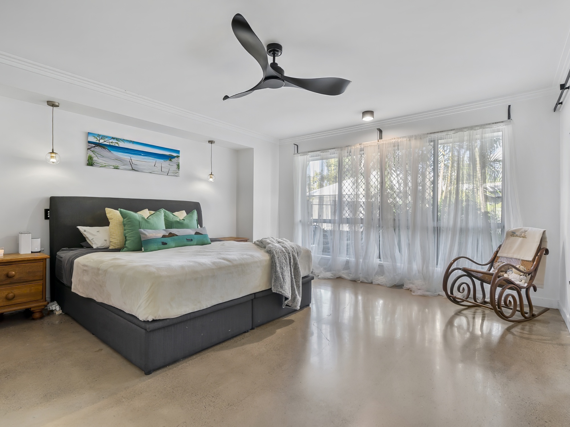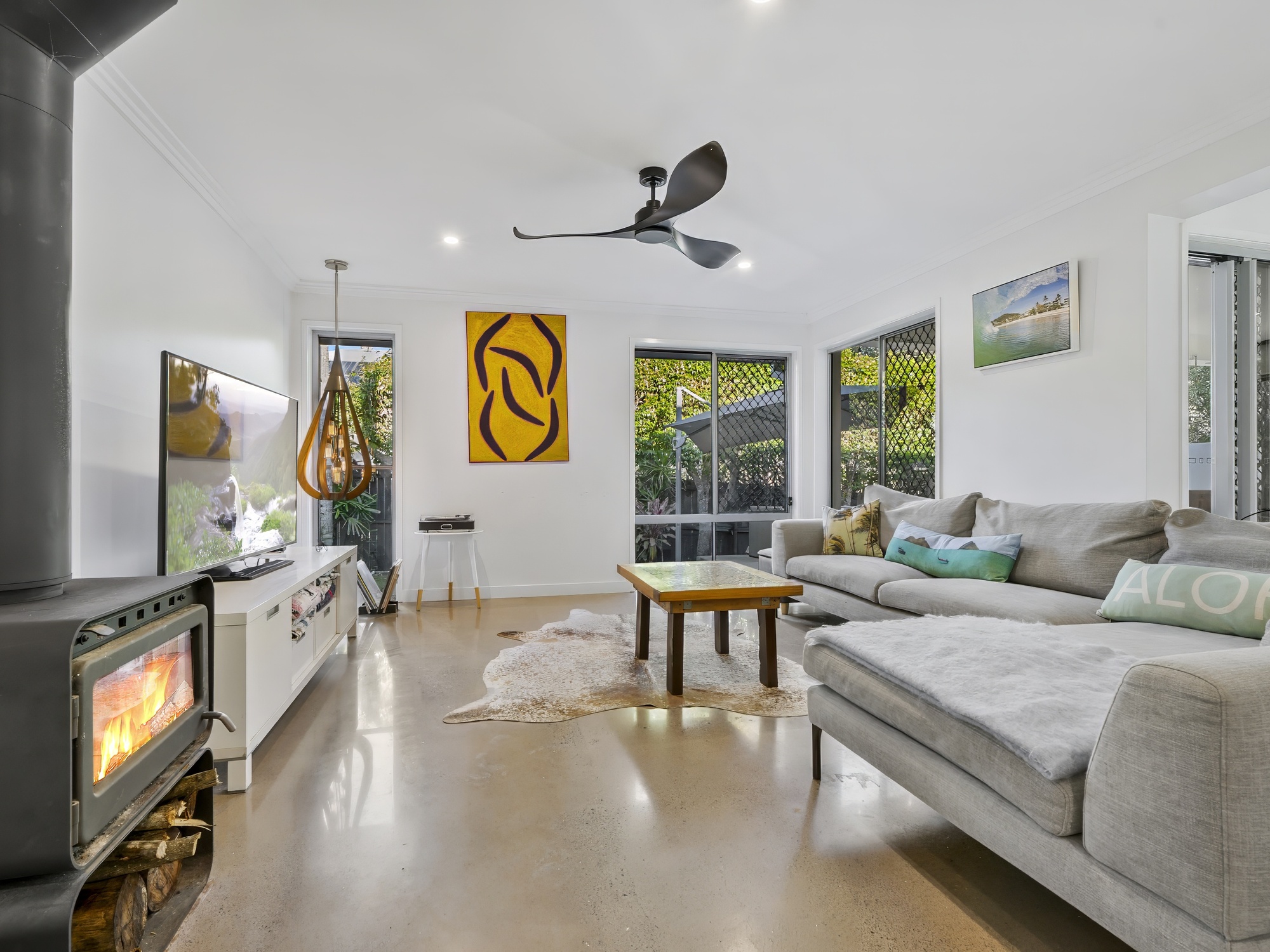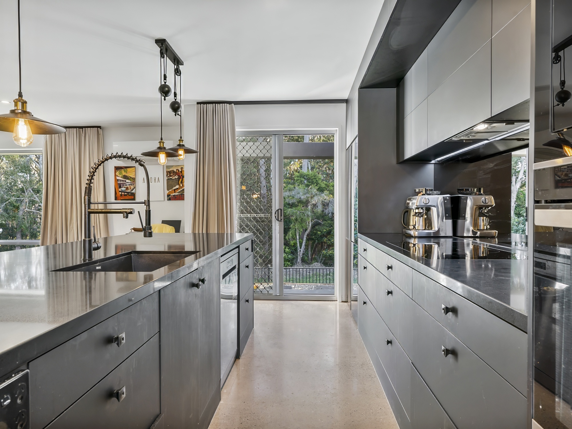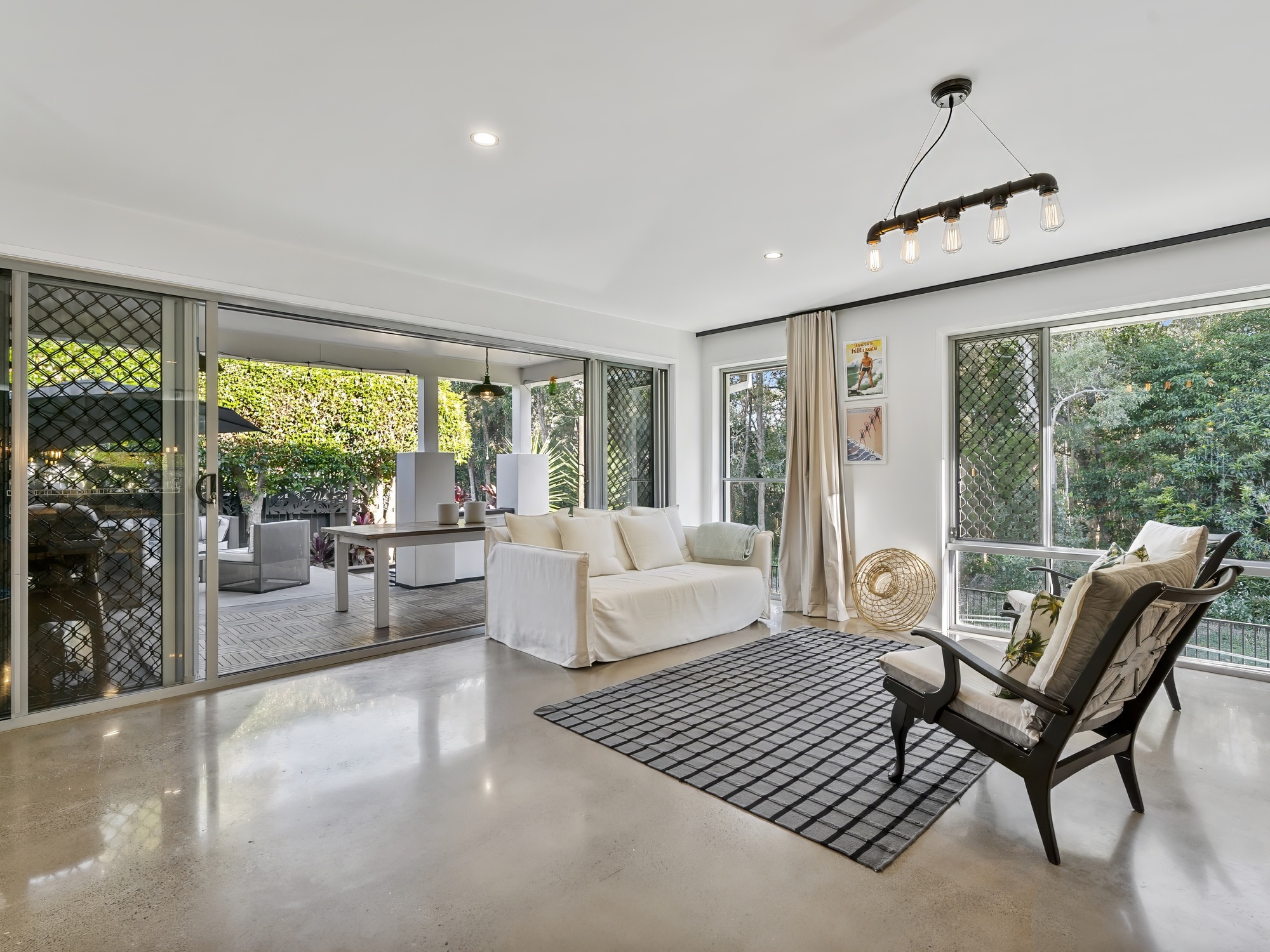 Perfectly nestled alongside a tree lined reserve, this stunning 4 bedroom residence sits proudly in a serene part of Peregian Springs. Artfully renovated to reflect the essence of contemporary industrial loft design, 44 Sandhurst Crescent effortlessly offers contemporary open plan living at its finest in a most sought after location. Designed and lovingly renovated by a local artist, this property has been meticulously planned to be as aesthetically pleasing as it is practical and versatile; each room skillfully transformed into a canvas of her own creation. Tasteful yet quirky throughout, massive barn doors reveal living spaces with cool polished concrete floors sweeping the entire property. Seamless flow from front door to back; spacious living areas spilling to an equally sculpted rear court revealing a serene bush backdrop offering privacy and stunning green space to enjoy.