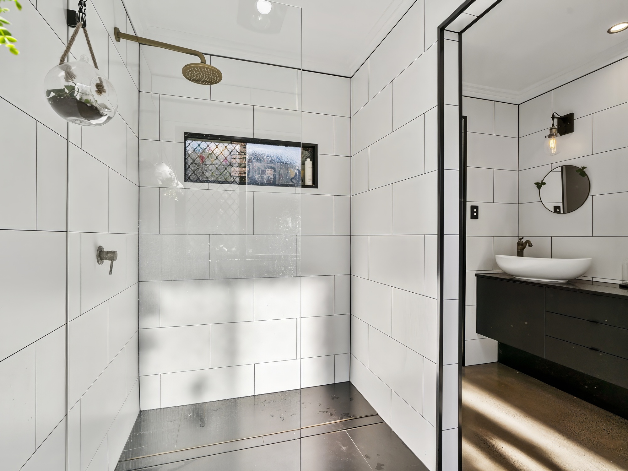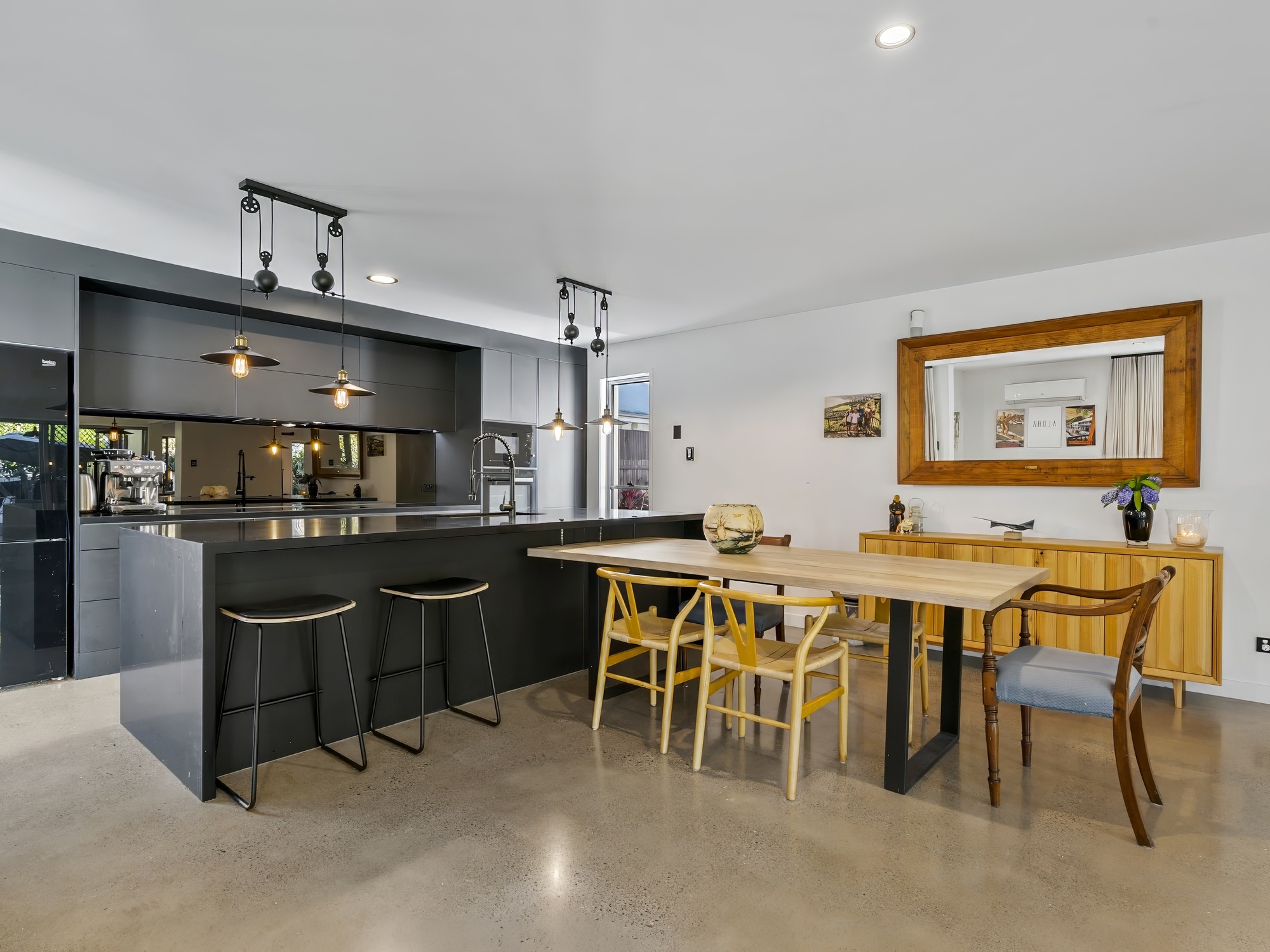 The heart of the home is the stunning matte black bespoke kitchen located at the rear of the home. Complete with stone benchtops and unique breakfast bar/dining table that presents as a practical art piece. Stunning industrial lighting installations are scattered throughout the home complimenting the theme and adding further dimension and mood to this stunning art home. The master suite is privately located toward the front of the home and is complemented by a large walk-in robe and massive spa like ensuite.
