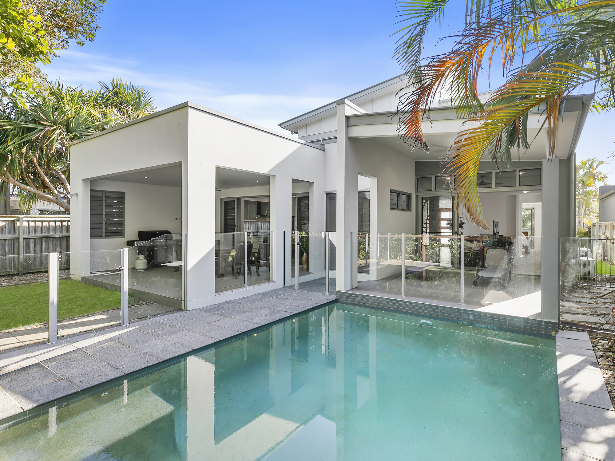 Discover beachfront bliss in this modern four-bedroom home nestled amidst tranquil native bush. Enjoy direct beach access, a private swimming pool, and beautiful tropical gardens.