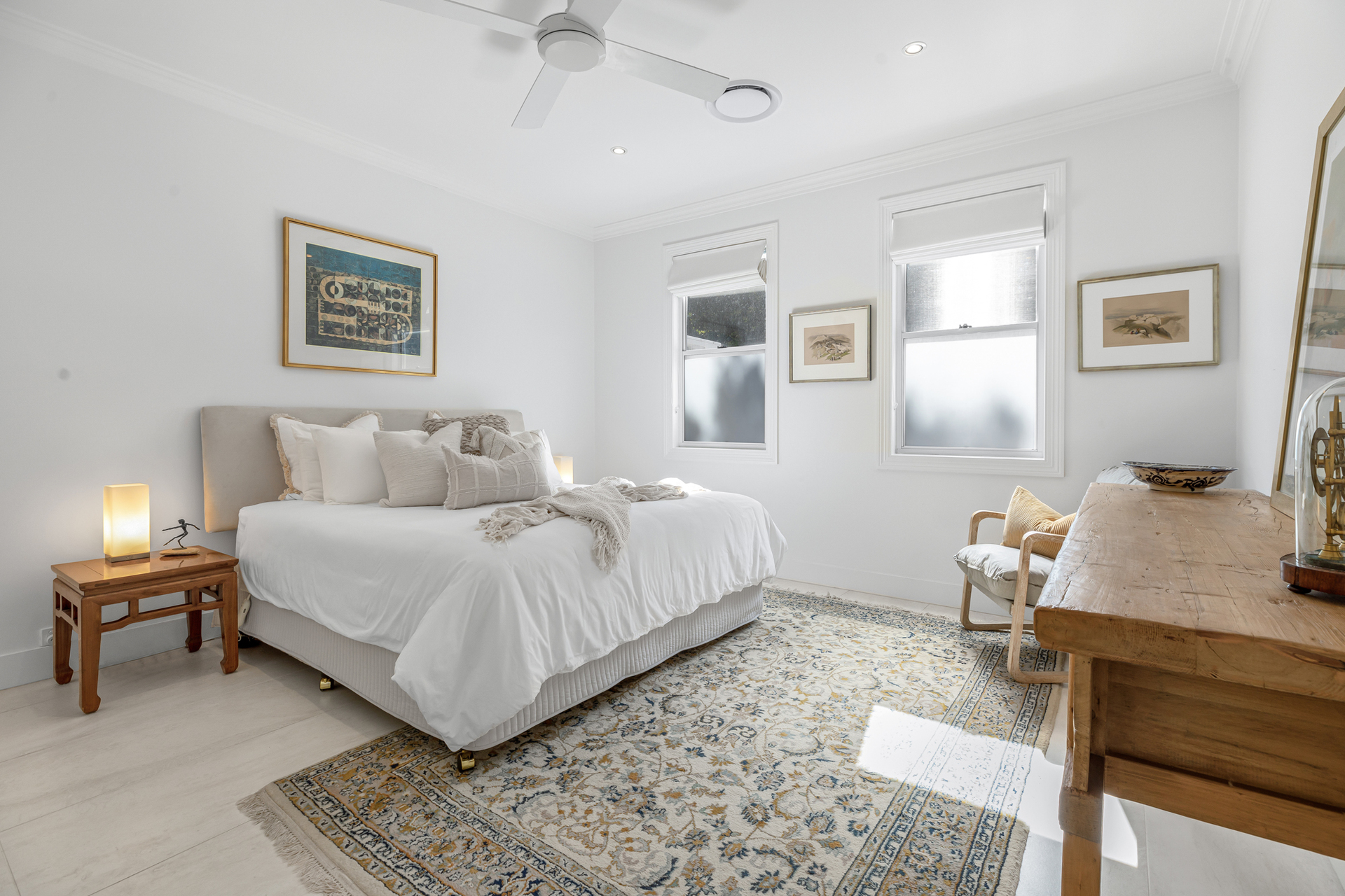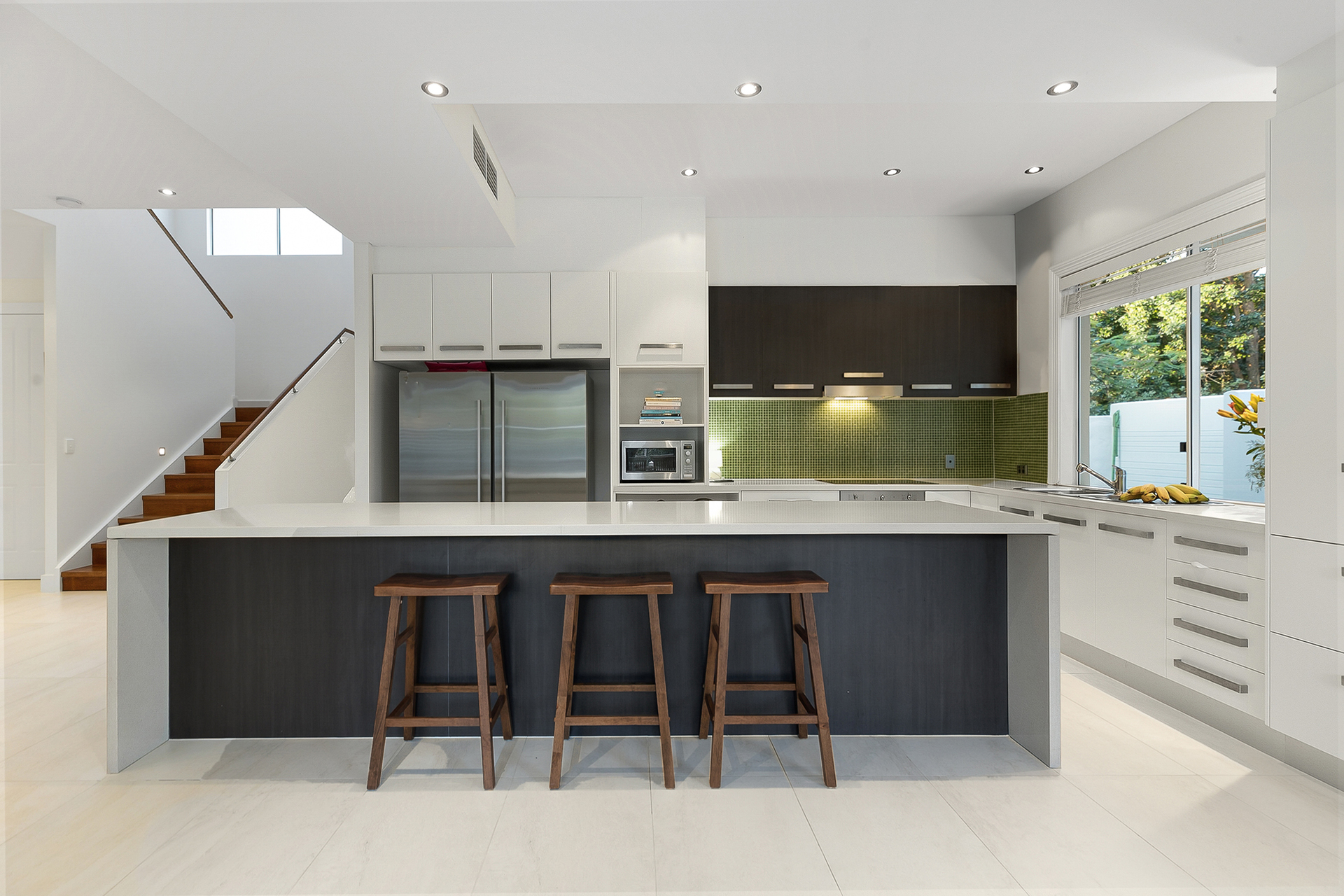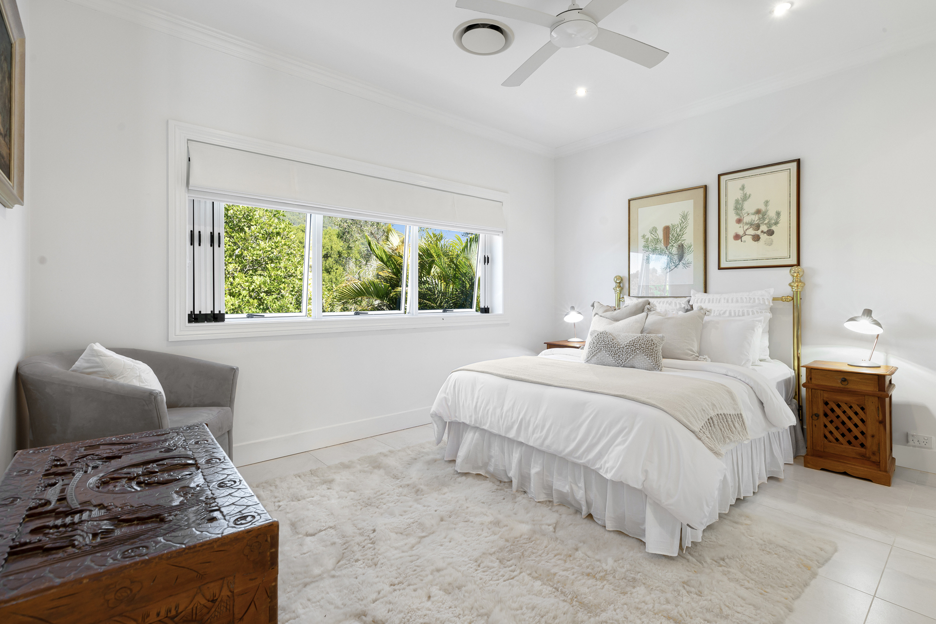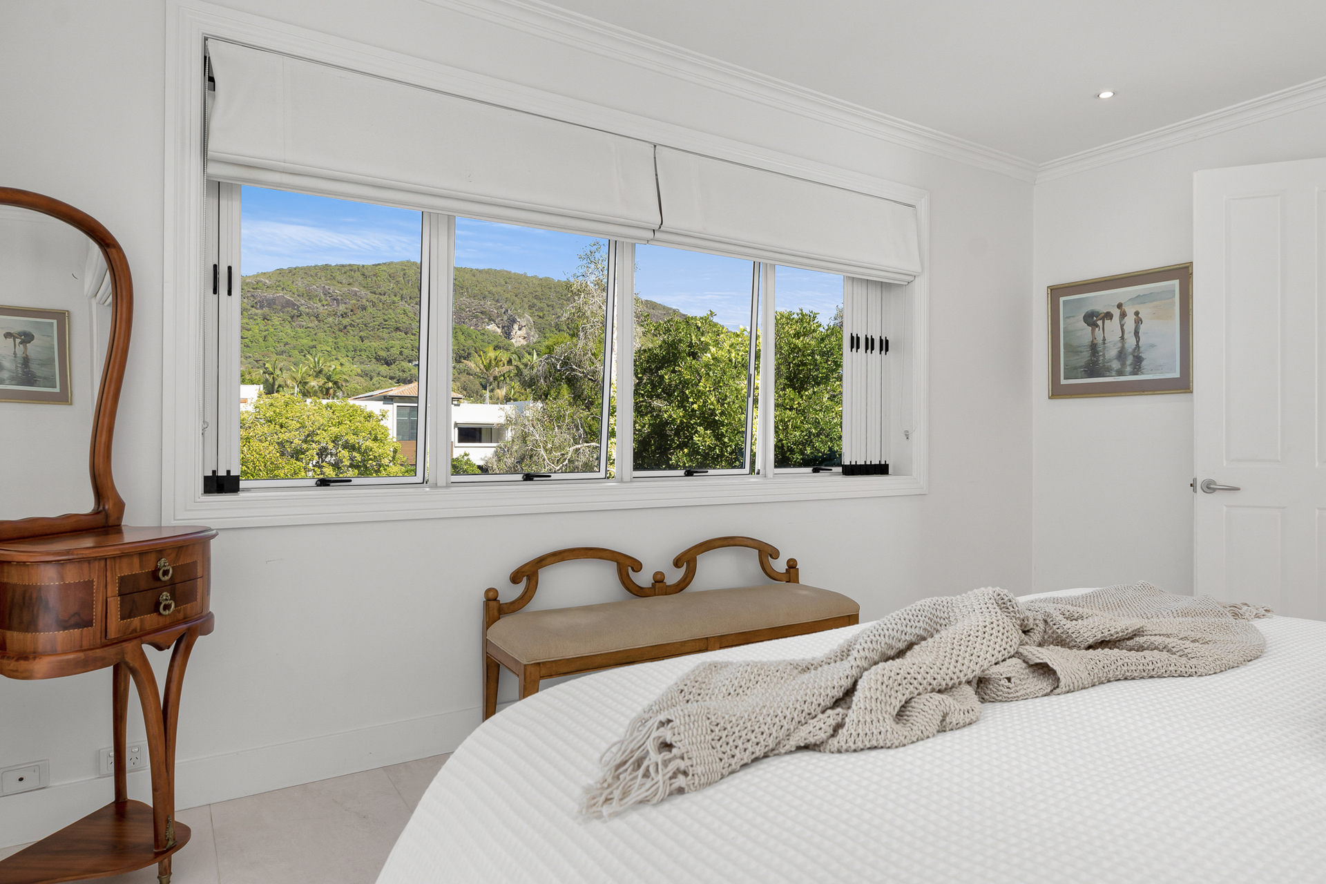 The main bedroom with ensuite, walk-in robe and full bathroom offers spectacular lake and mountain views. Three other bedrooms enjoy their own picture framed outlook to Mount Coolum and share the main bathroom completing the upper floor.