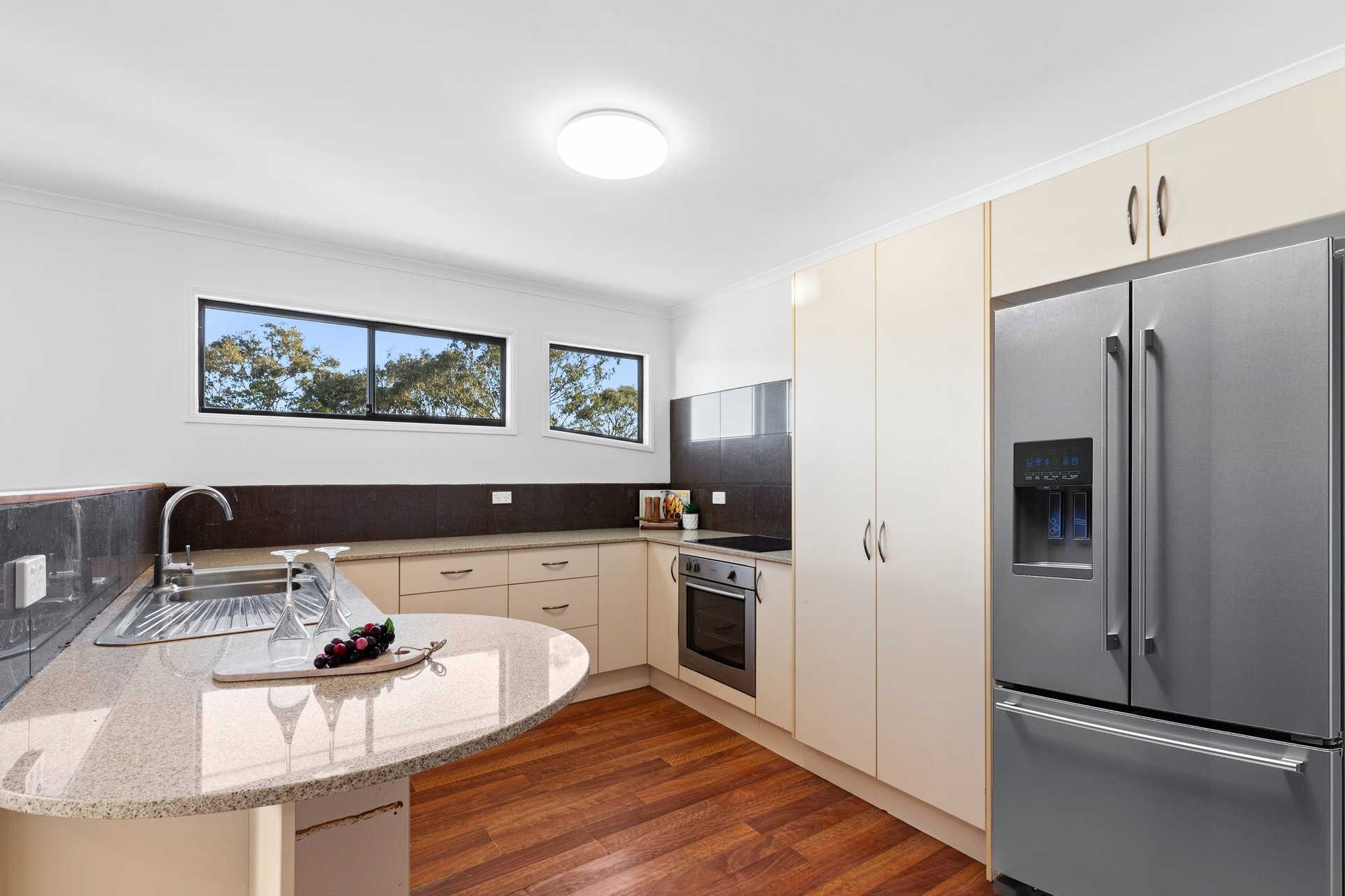 - Multiple living and entertaining areas across 2 levels - Light-filled 2010-built pole home on a quiet street - Spacious backyard deck with storage under the home - Thoughtful floorplan offers great bedroom separation - U-shaped kitchen perfect for cooking and family meals - Expansive master suite with ensuite and walk-in robe - 3 additional bedrooms with built-in storage space - Solar hot water, ceiling fans, and split system AC - 5000L water tank services laundry, toilets, and hoses - Short walk to local schools, gym, shops, and cafes