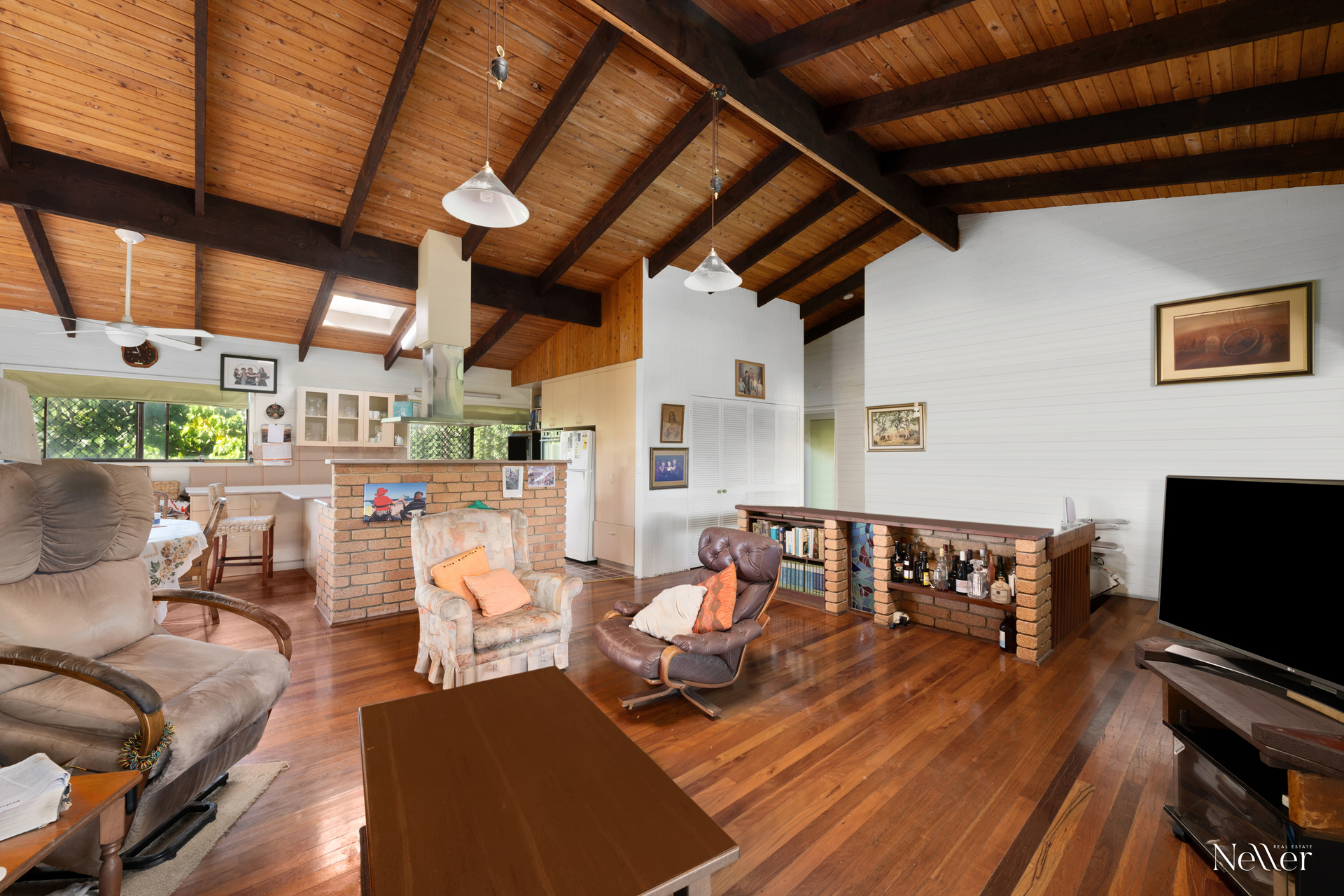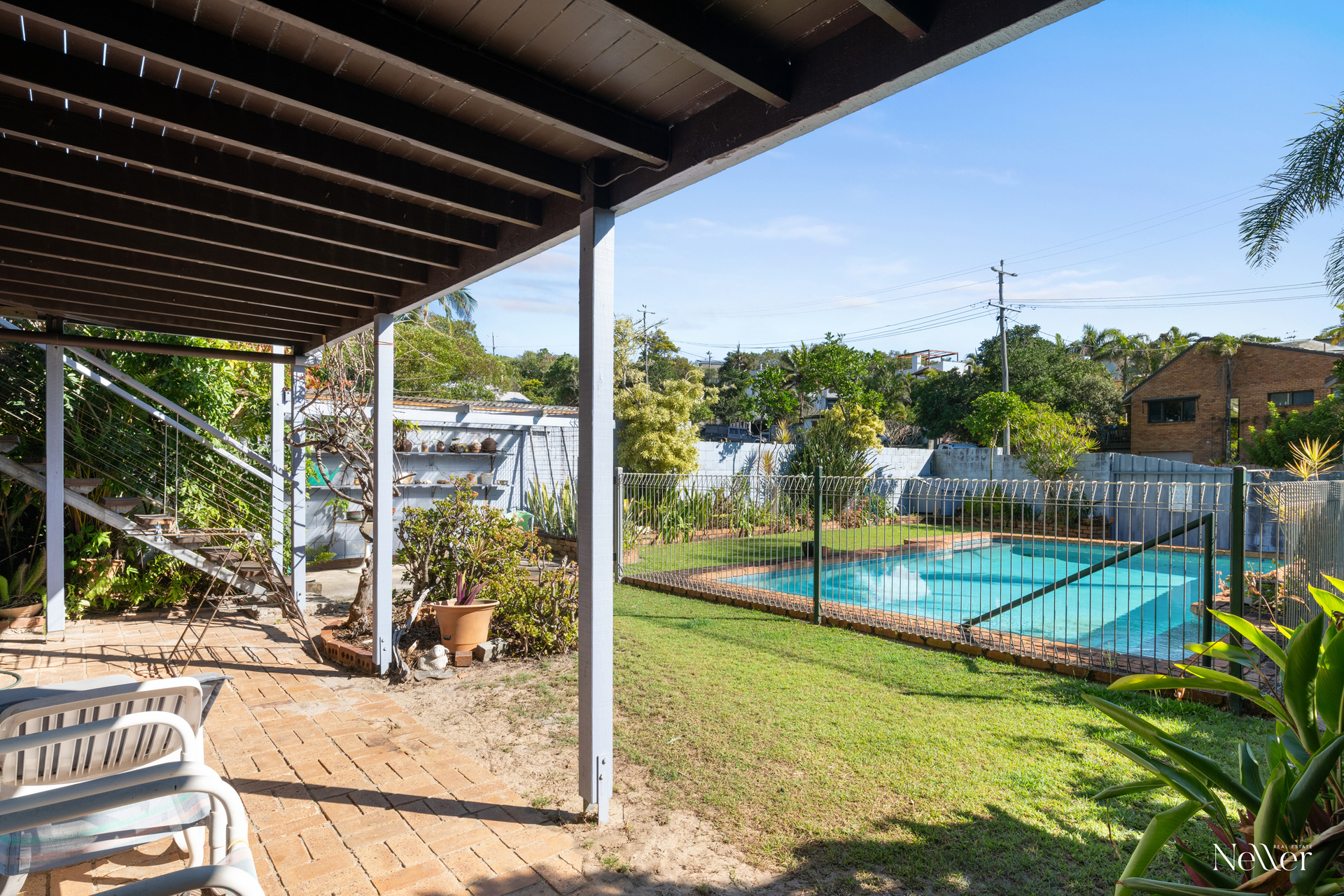• 3 bedrooms, 2 bathrooms, study, open plan living • Functional kitchen with stainless steel appliances • Raked timber lined ceilings, hardwood timber floors • North-easterly aspect, cooling breezes & sea glimpses • Footsteps to sand, 400m to North Peregian Lifeguard • Walk to village & surf club, 15 mins to Hastings St • Much-loved tightly held by same family since 1985