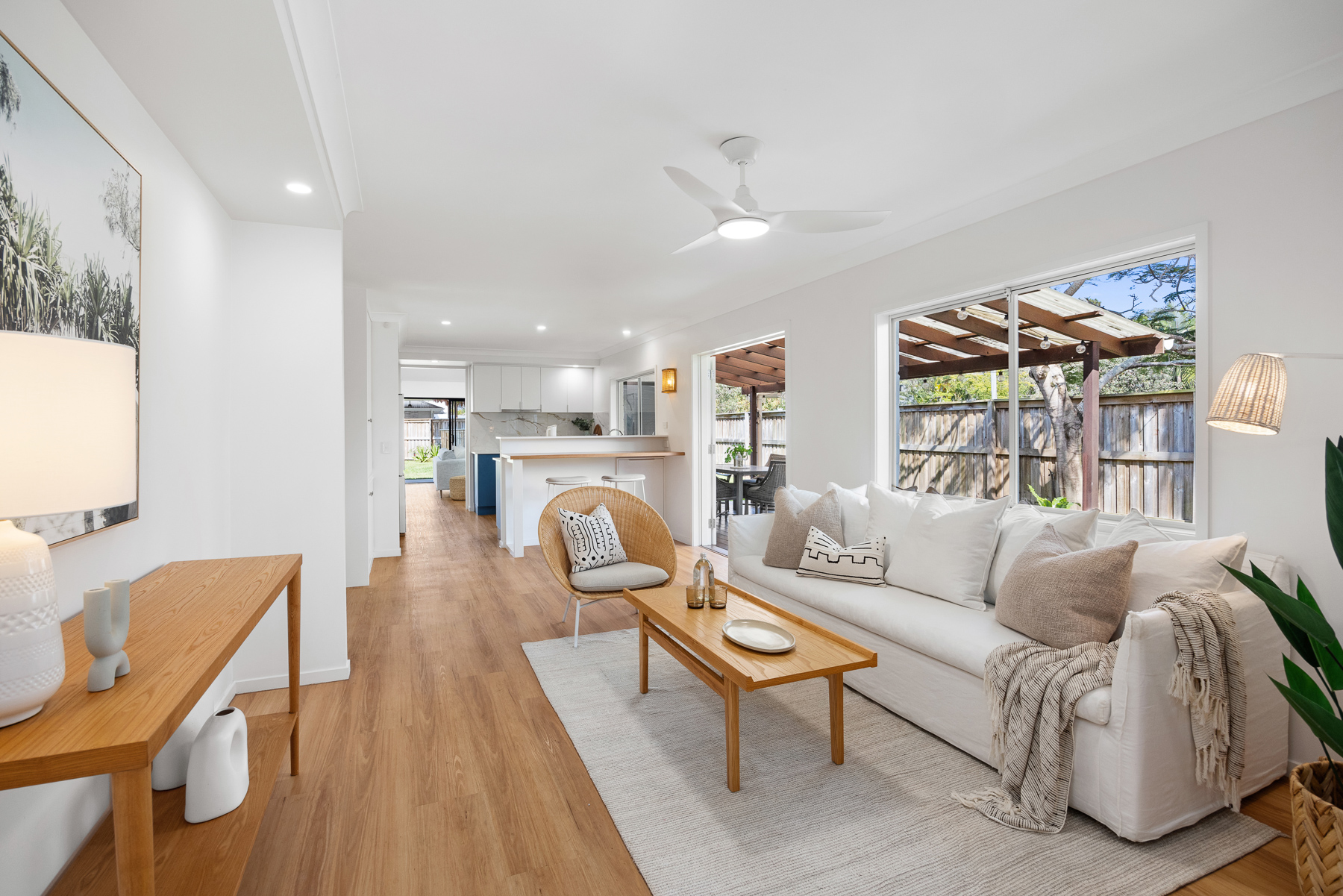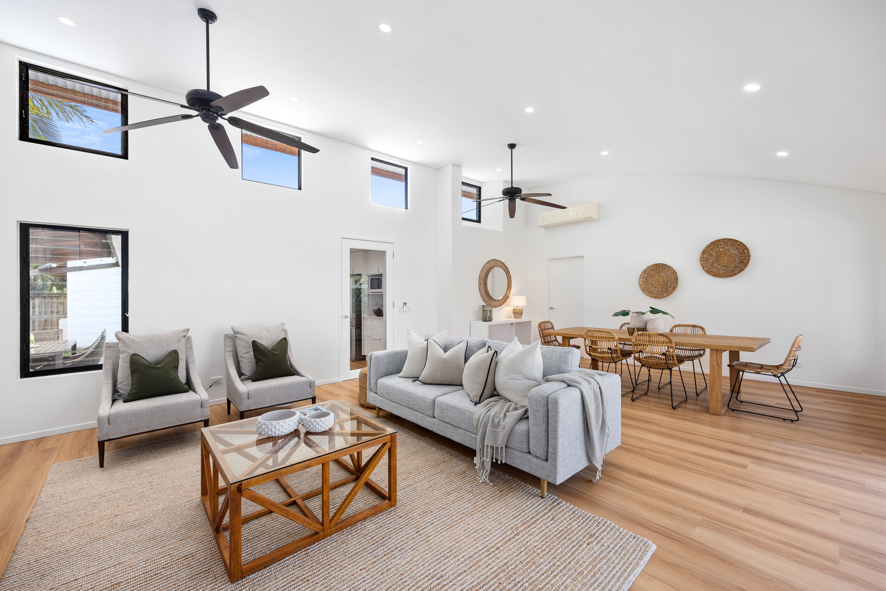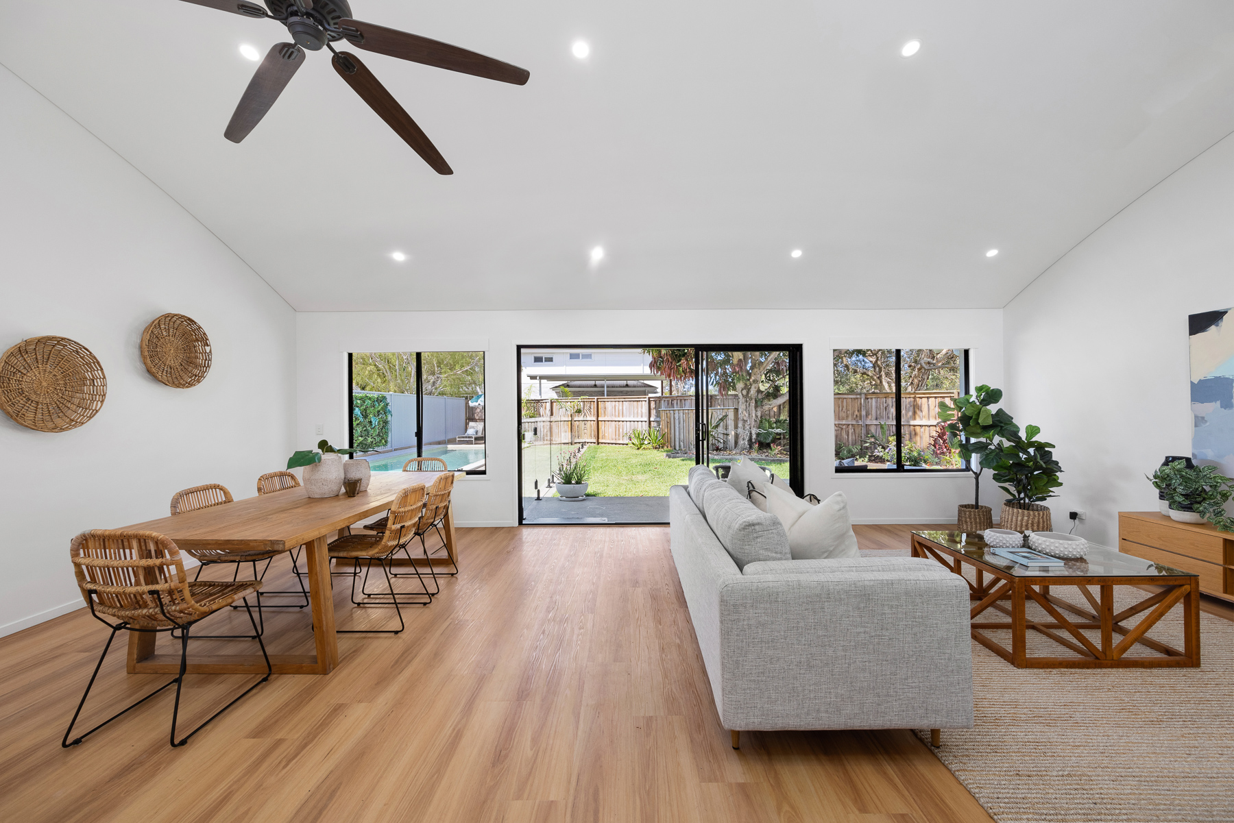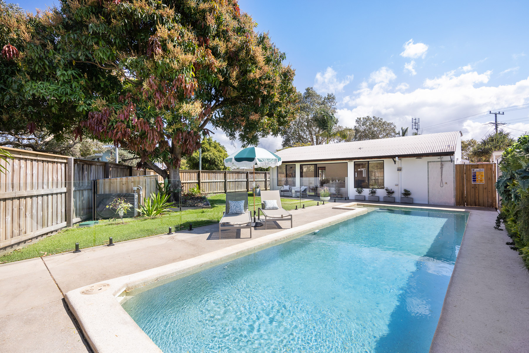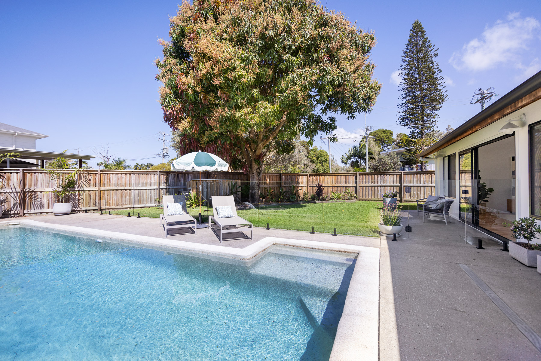 The Ultimate Coastal Abode Beautifully renovated home featuring a timeless contemporary design and large light filled spaces. Positioned on the corner of the highly sought after Spindrift Avenue with an easy flat walk to the beach and Birtwill Street shopping precinct.