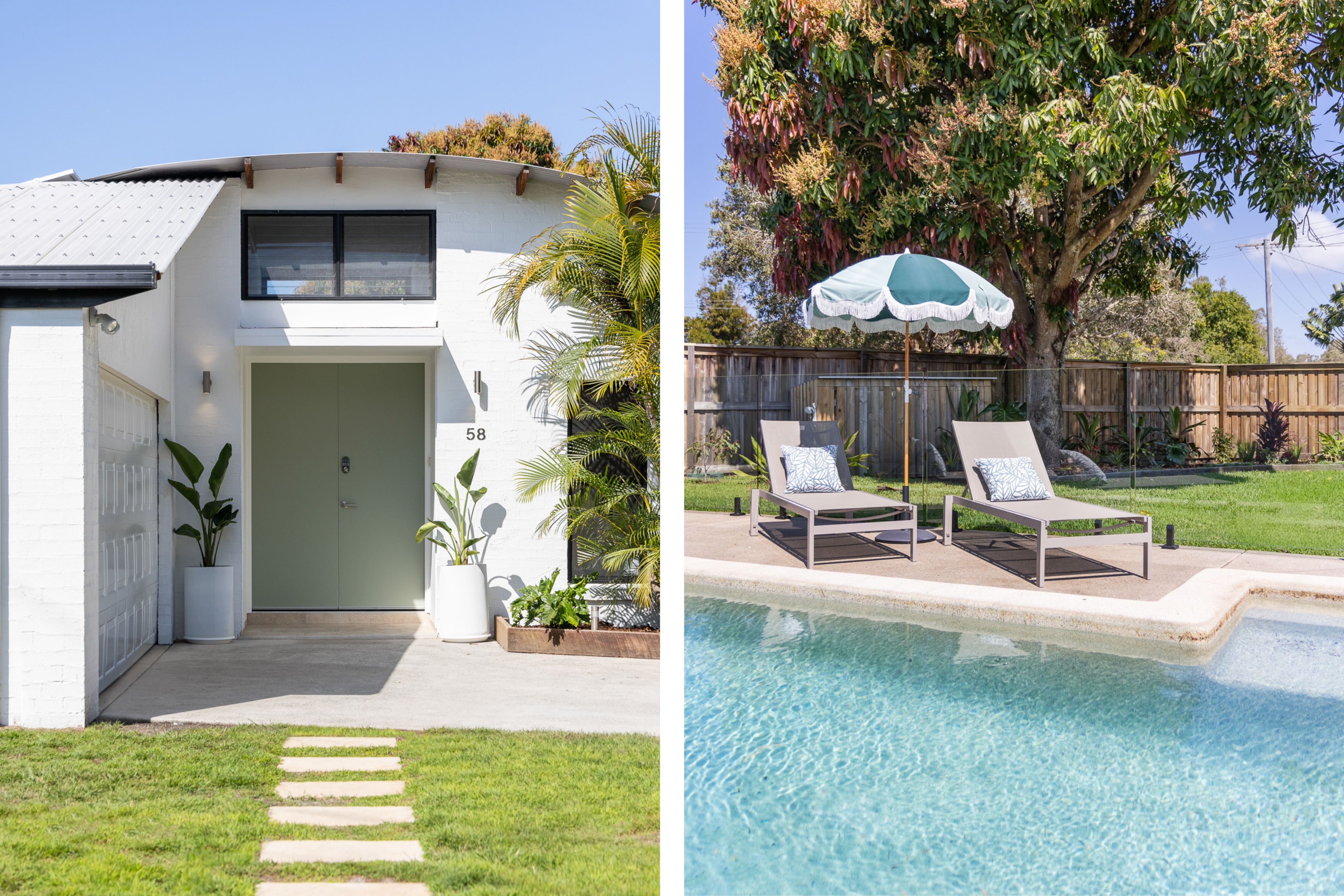 The unique character of the home is apparent as soon as you step through the front door with curved ceilings and louvre windows providing ventilation and an abundance of natural light. A central kitchen and second living area open onto a private covered deck, but the real hero is the massive east facing living area at the rear of the house overlooking the pool and