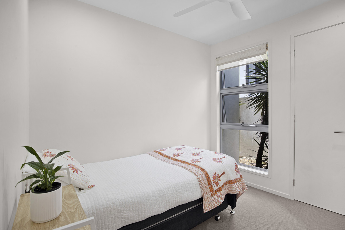 High ceilings throughout including soaring ceilings up to 3600mm in main living zone, blackbutt timber flooring and staircase, 20mm stone benches in kitchen and bathrooms, stainless steel appliances, gas cooktop, soft close cabinetry, awning and clerestory windows, square set cornices, private balcony off master retreat, and outdoor spa in the north-eastern corner – are among the suite of features that enhance value, liveability, and appeal.