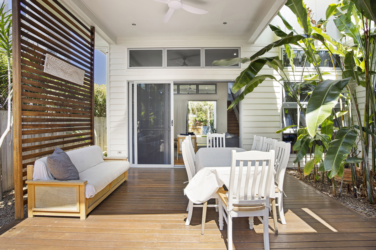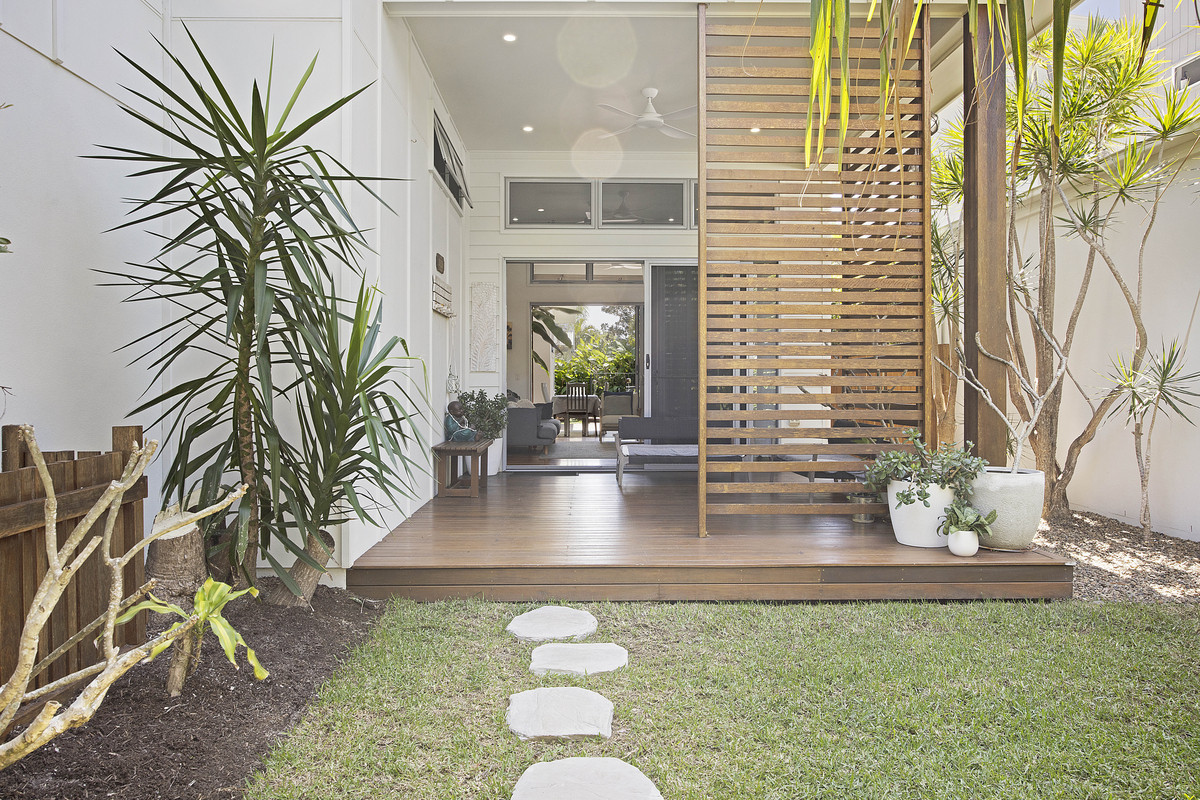 • Private covered north and south decking for alfresco relaxation • Outdoor spa on north-eastern side, landscaped tropical gardens • High ceilings, blackbutt flooring & carpets, 3kW solar power • Elegant interiors, coastal ambience, relaxed living • Walk to beaches, shops, parks, boardwalk, dining & more… • First time to market since built, inspections highly recommended