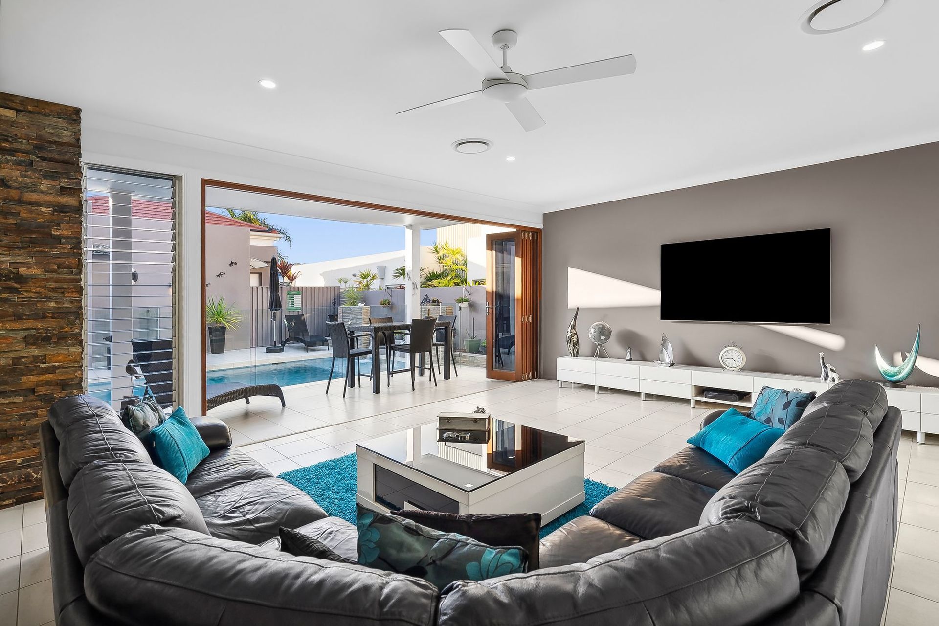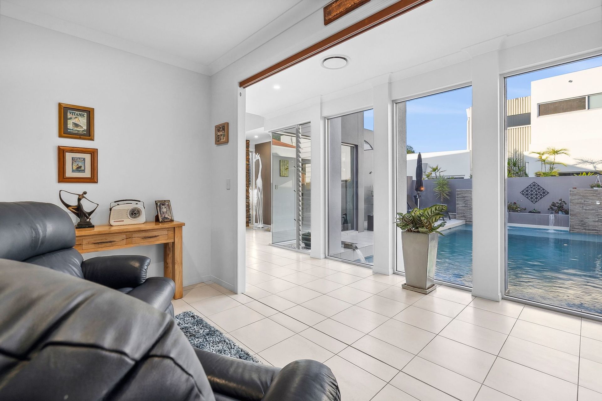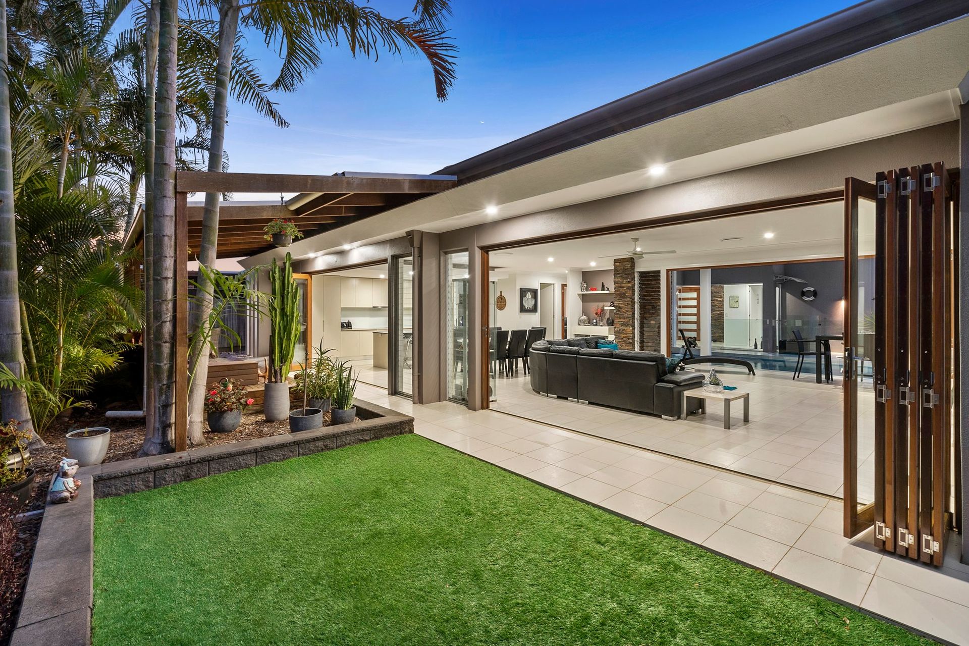 Tropics A grand pavilion-style residence with broad golf course frontage, this poolside property creates a statement in sub-tropical living. This is a luxury ex-display home with a tranquil island vibe and uninterrupted nature outlooks, on a premium 700m2 (approx) allotment by the 17th hole of the Peregian Golf Course.