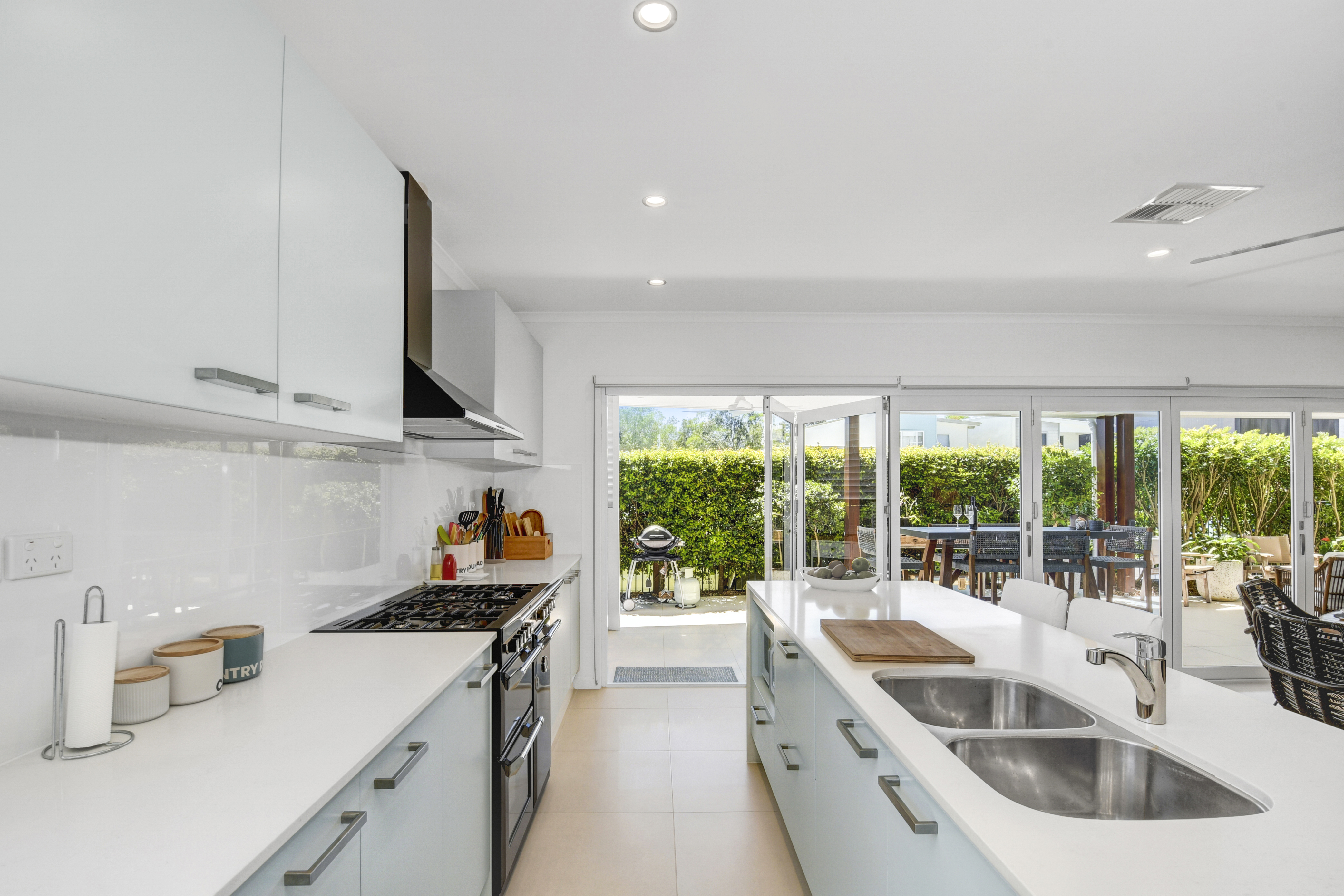 * Large media room/office upstairs. * Open plan kitchen family room with butlers pantry. * Extra-large private alfresco with gas BBQ connection and six bi-fold glass sliding doors. * Ducted air conditioning throughout with four zones * Ceiling fans throughout the house and alfresco. * Double garage with built-in storage racks.
