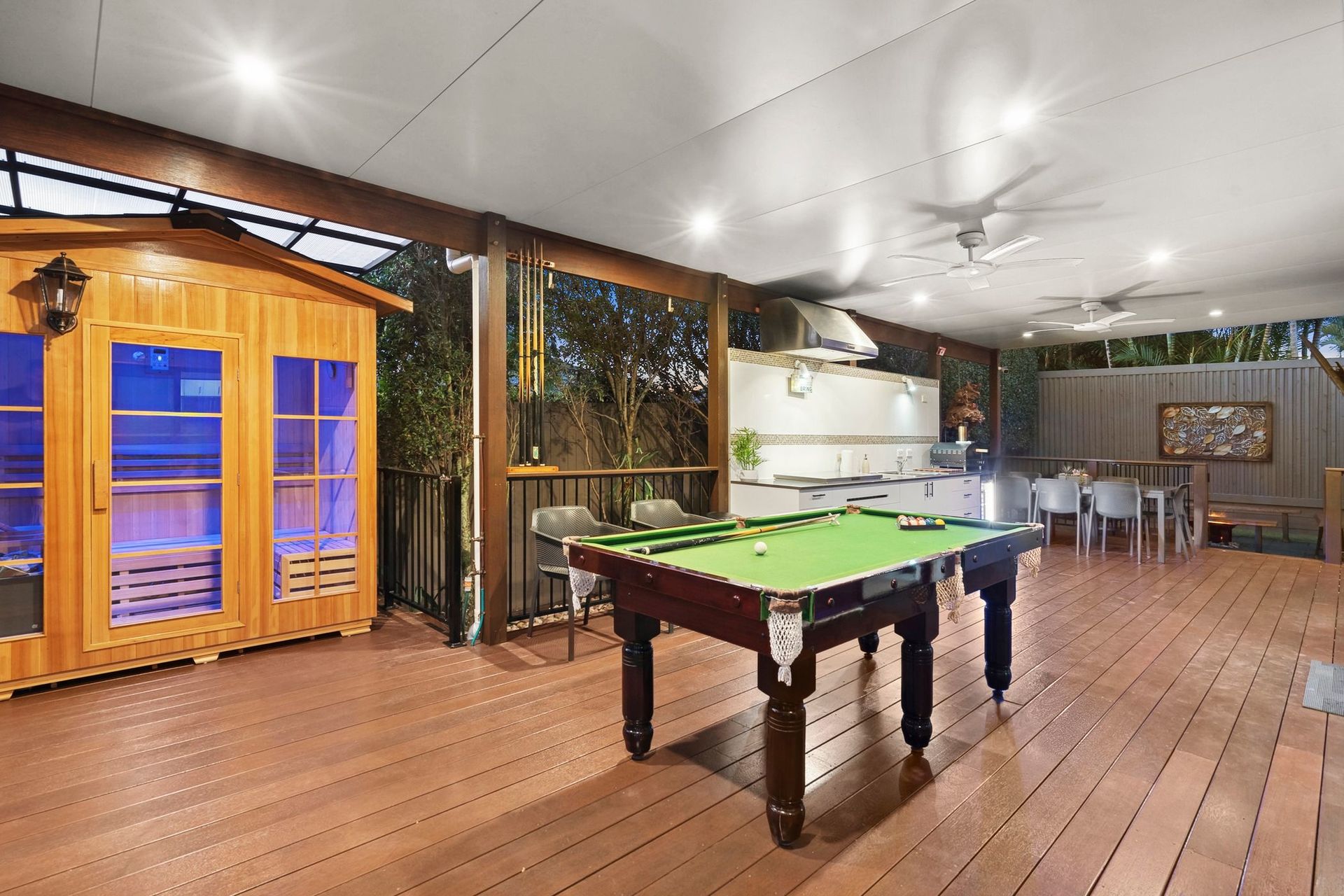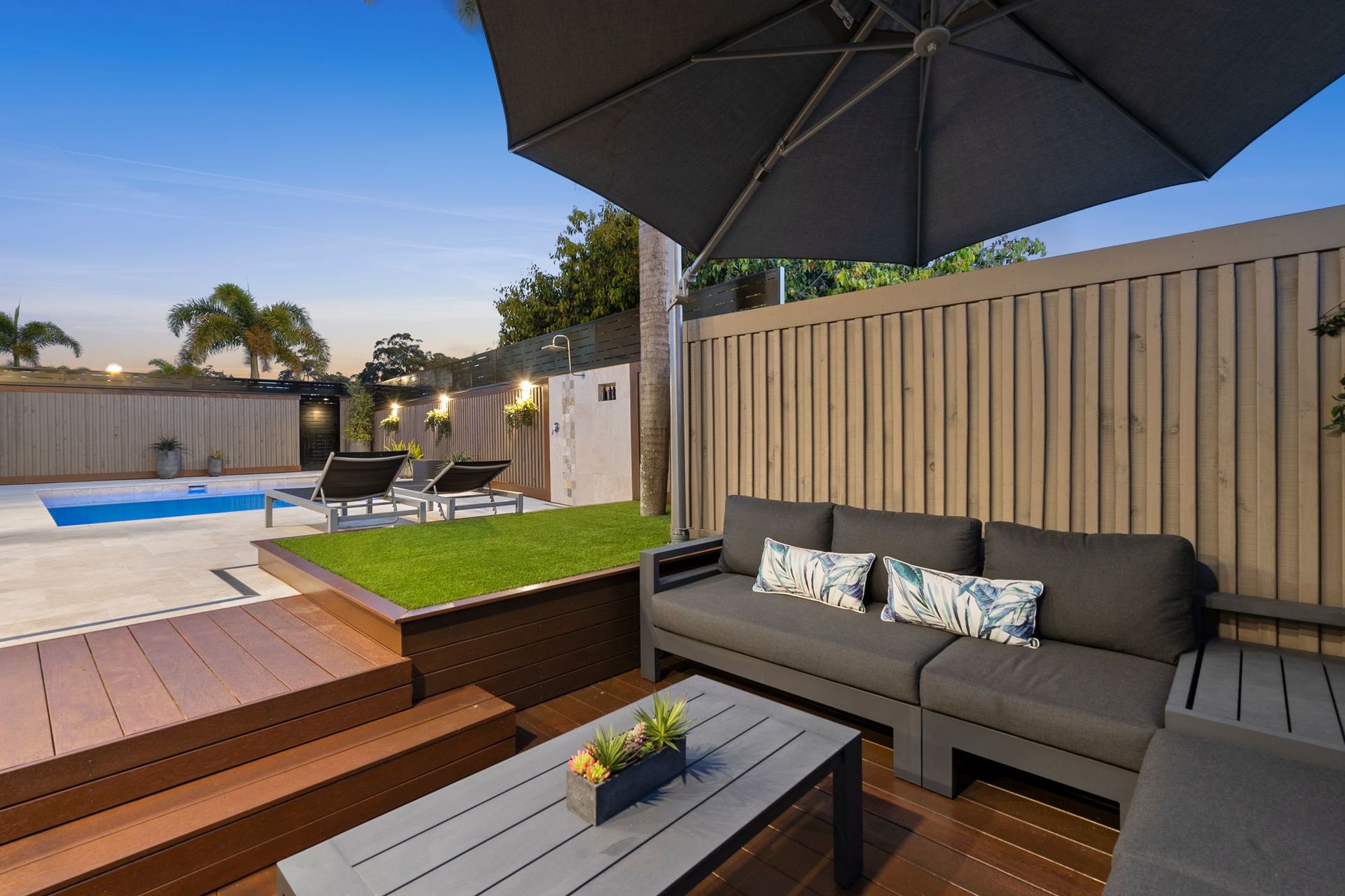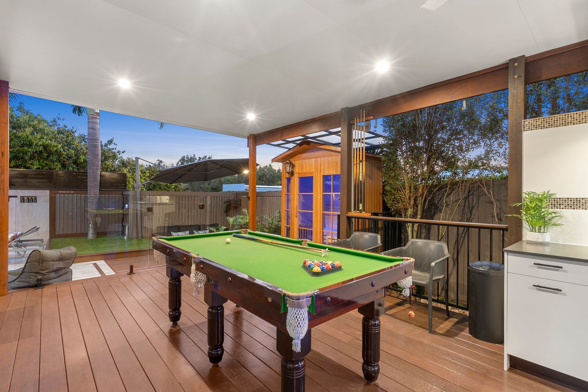 Enjoy summers to remember courtesy of a sparkling salt-water pool (added 3 years ago), a sprawling undercover entertaining deck, a near-new outdoor kitchen, a fire pit area, and a sunken pool lounge. Every element is premium, from the travertine poolside paving and bespoke hot-and-cold outdoor shower, to the stone-topped outdoor kitchen with a BeefEater bbq, and more.