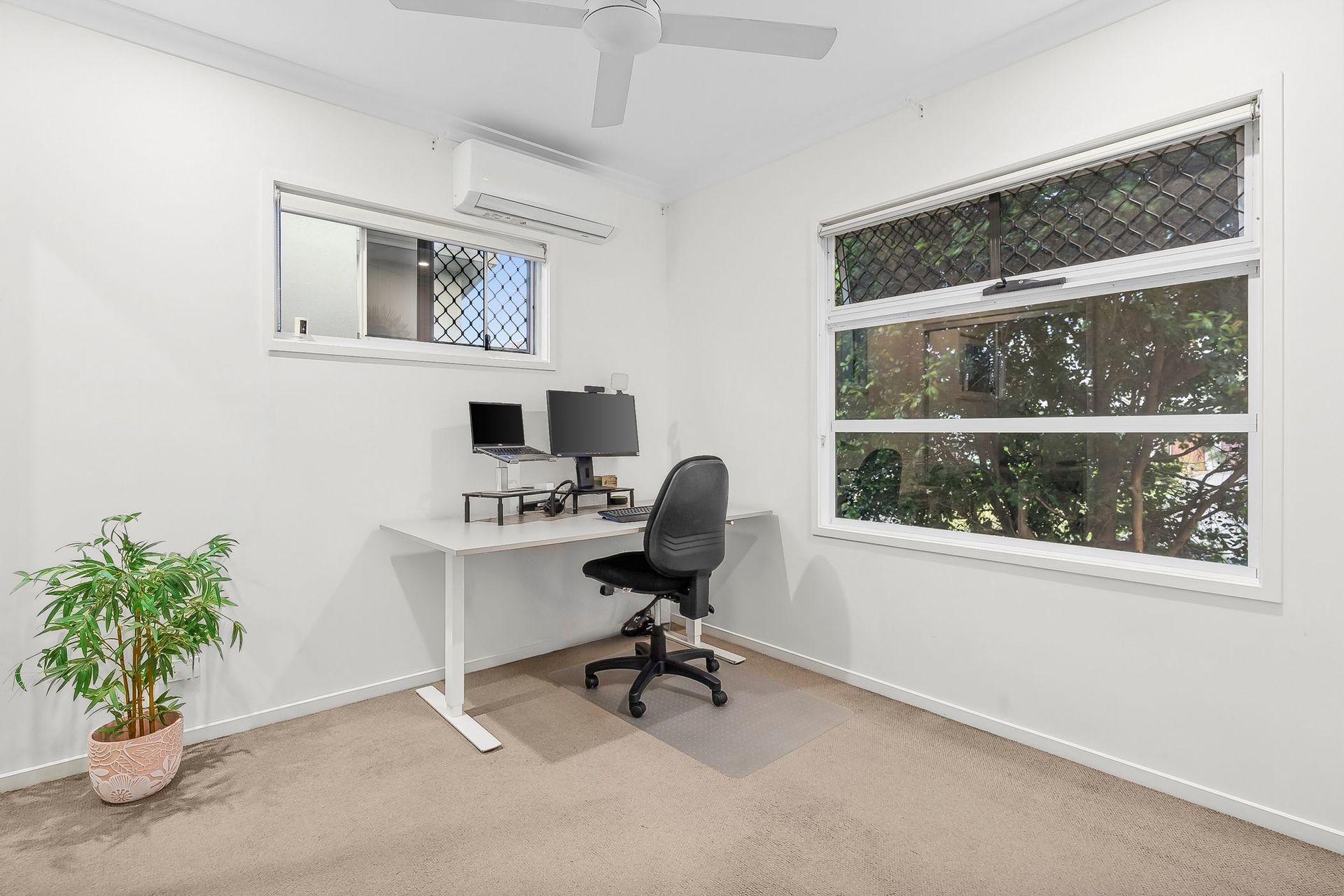 Dine alfresco on the undercover patio and enjoy an air-conditioned interior with ceiling fans throughout. Further finishes include stone-topped bathroom vanities, mirrored built-in robes, and a remote single garage with internal entry.