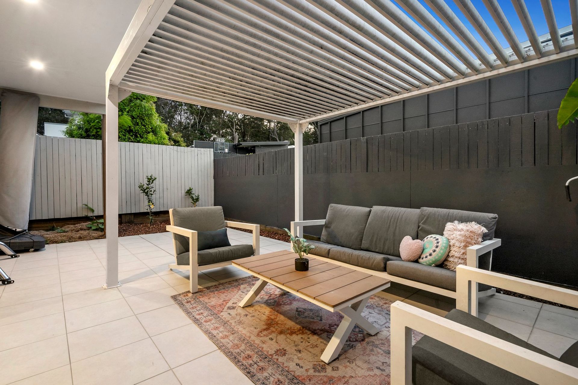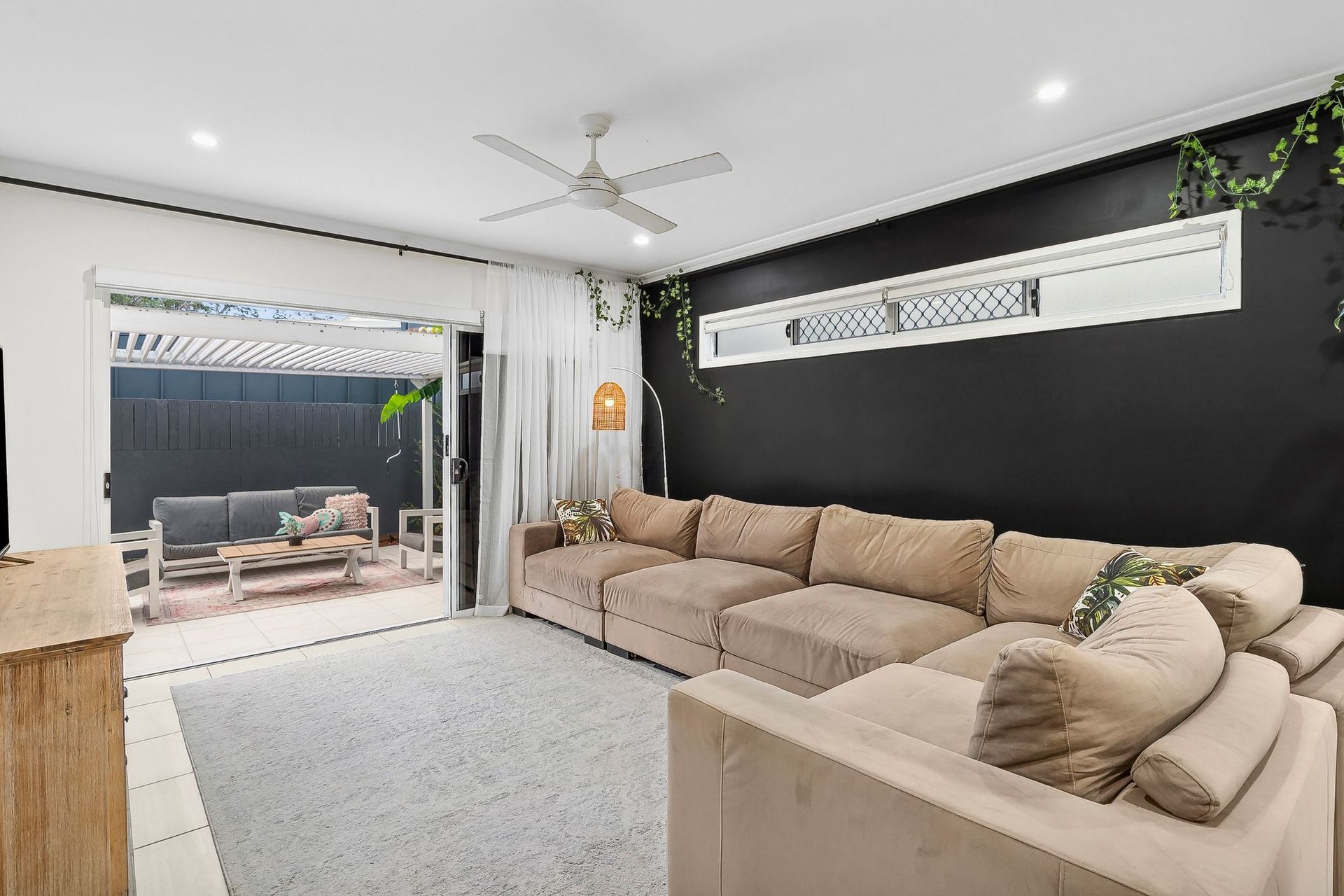 Here, there is a strong sense of community, no through traffic, and easy access to nature walks. The layout features open-plan living, a stone kitchen with stainless steel appliances, and a well-sized master suite with private access to a rear courtyard.