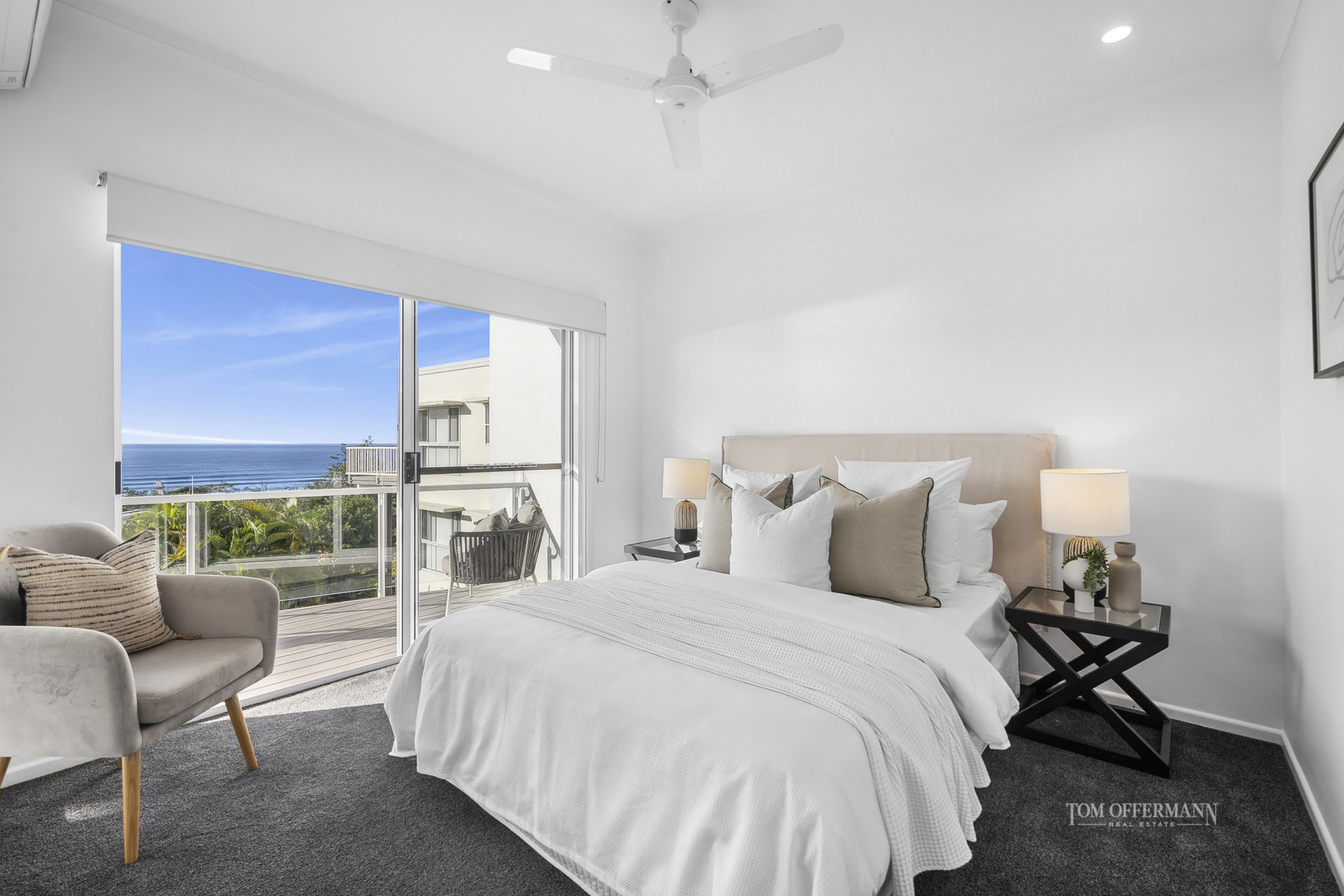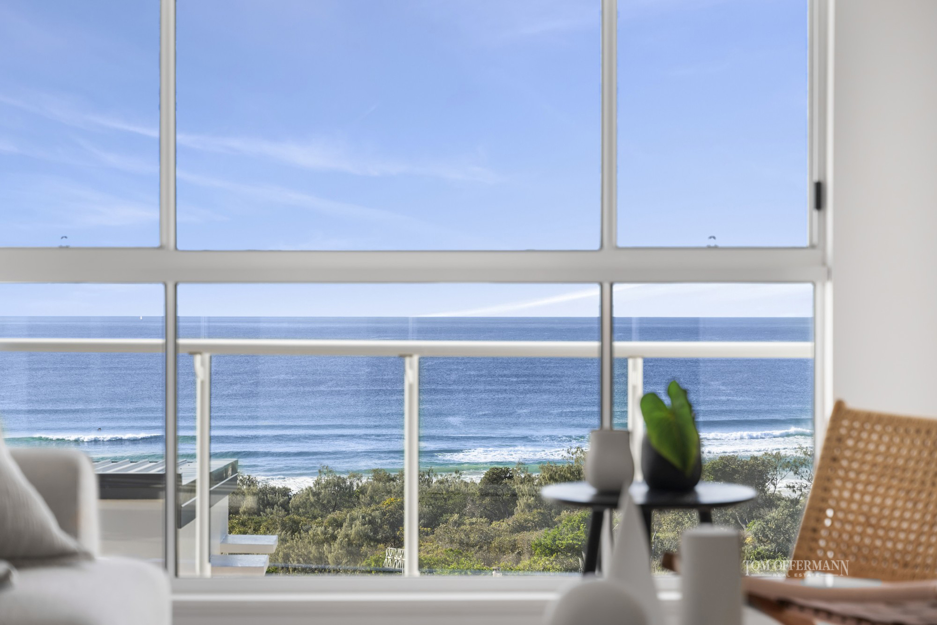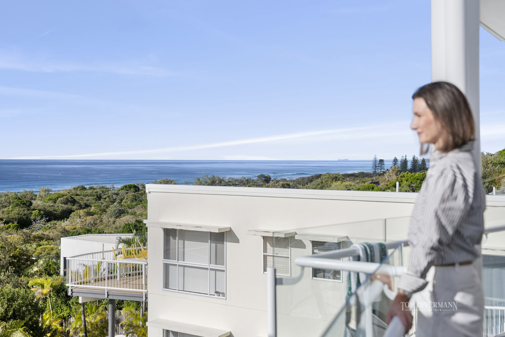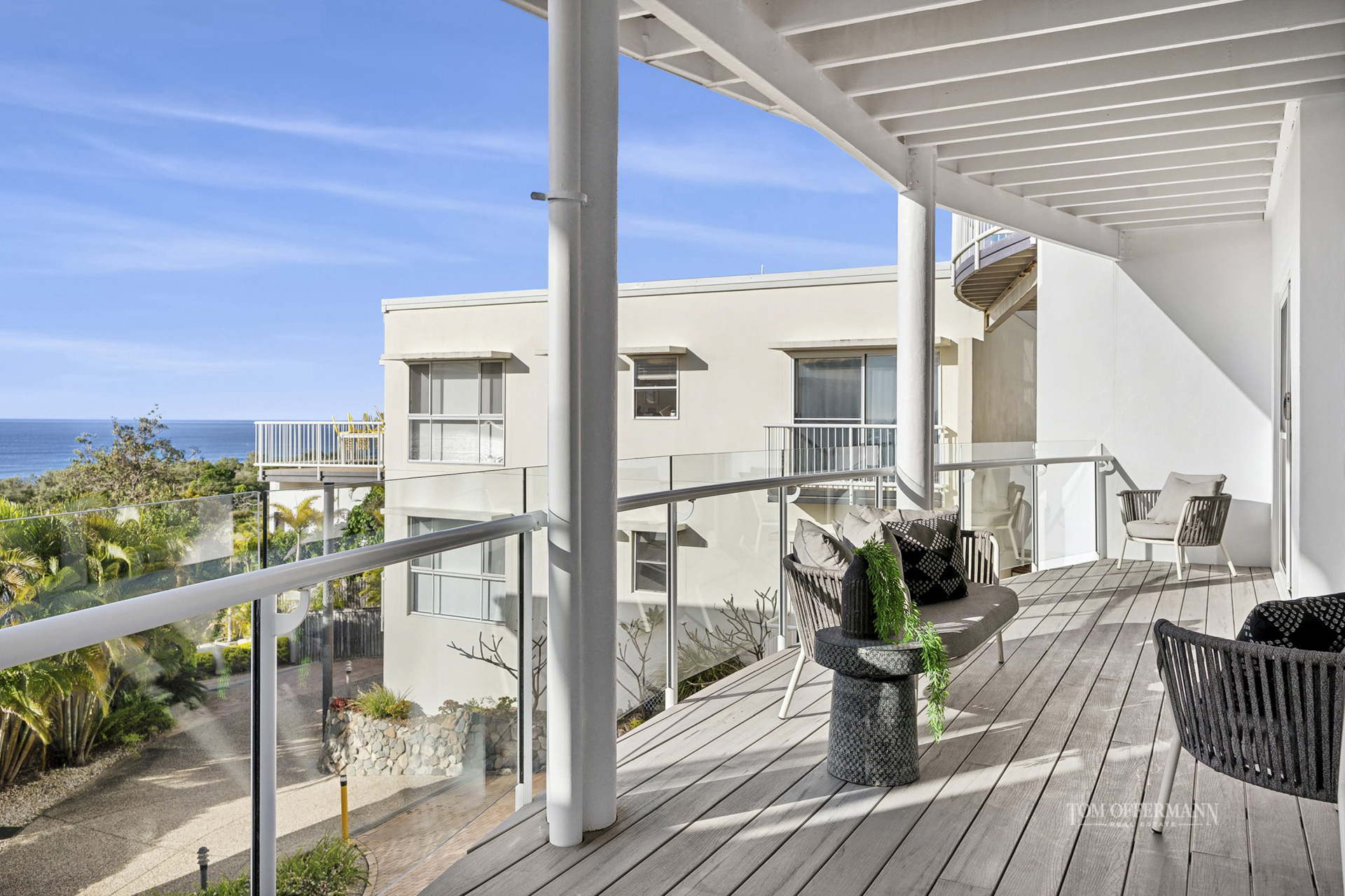 Wake to views of white-capped waves rolling onto Peregian Beach sand, and the coastline stretching beyond Point Arkwright to Mooloolaba and Caloundra.
