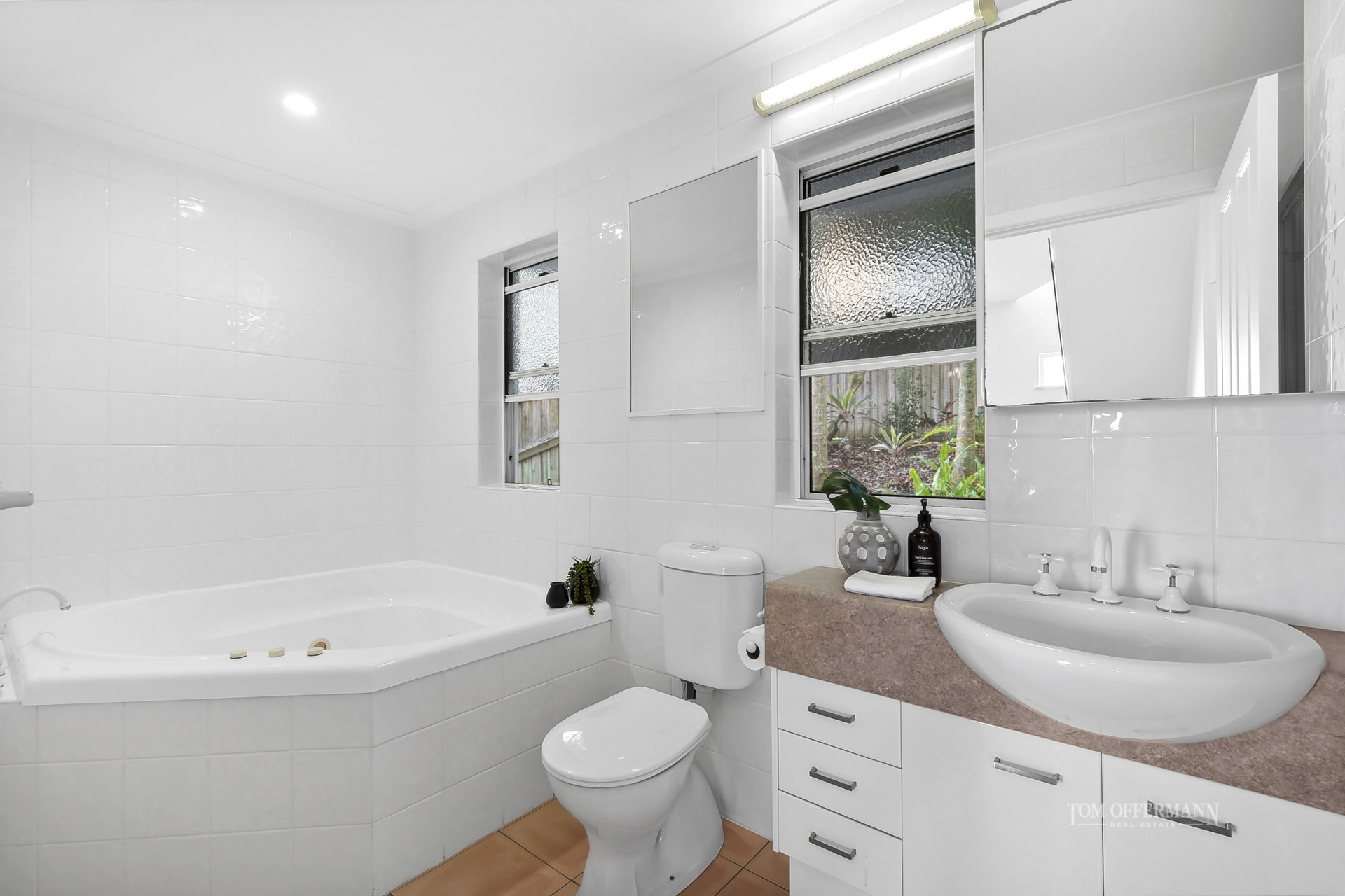 The third bedroom with sliders opens to a rainforest oasis, private and enclosed with high fencing. It is a spacious, beautiful, secluded retreat, ideal for a paw some four-footer, a vegetable patch, or a space for the kids or grandkids to play.