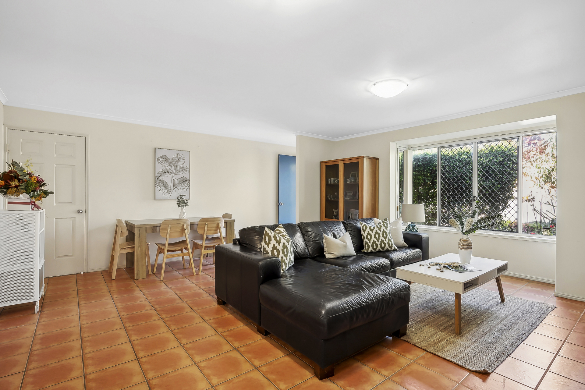 Featuring three generously sized bedrooms, each with built-in robes, this home provides ample space for a growing family or those looking to downsize. The open-plan living area boasts a spacious, modern kitchen with a charming bay window, soft-close doors, and a built-in microwave, making it a perfect hub for both cooking and entertaining.