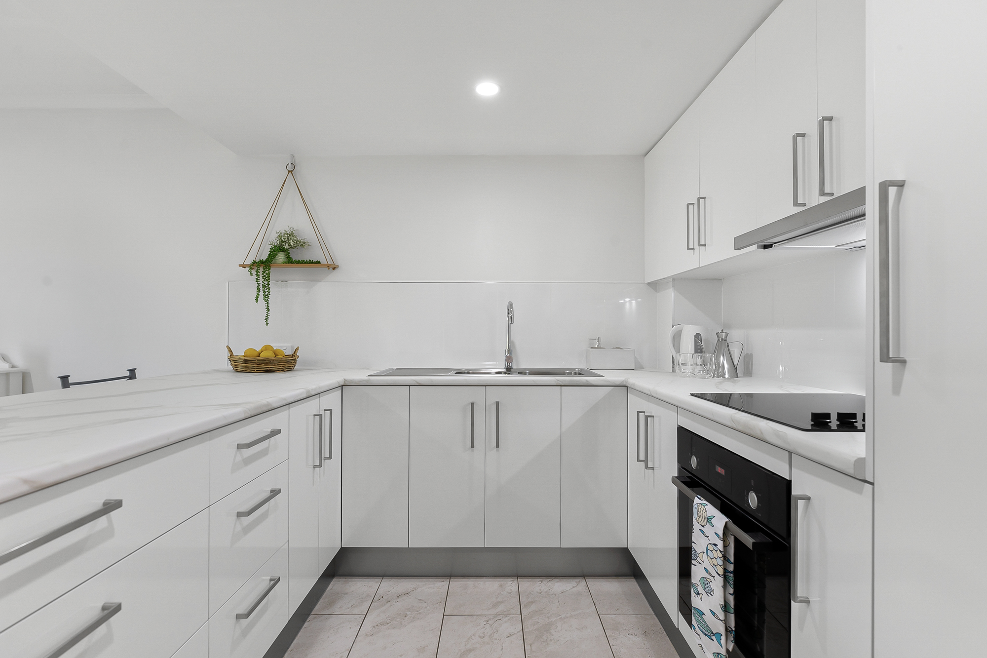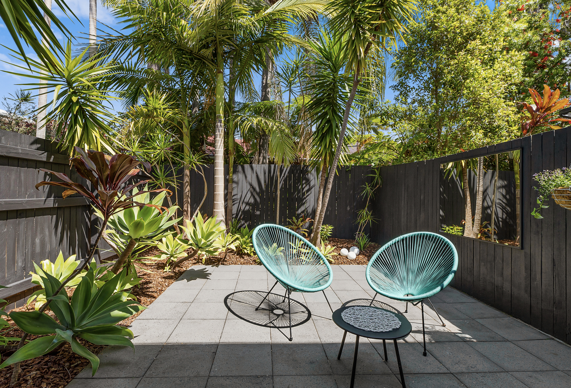 The townhouse features two bedrooms, a modern bathroom with a separate bath and shower, a convenient powder room, concealed laundry & storage area, a lounge, dining area, and a brand-new central kitchen. Enjoy the balcony off the master bedroom, which boasts mountain views with a leafy outlook. There is also a front deck and to the rear is a private courtyard with low maintenance gardens.