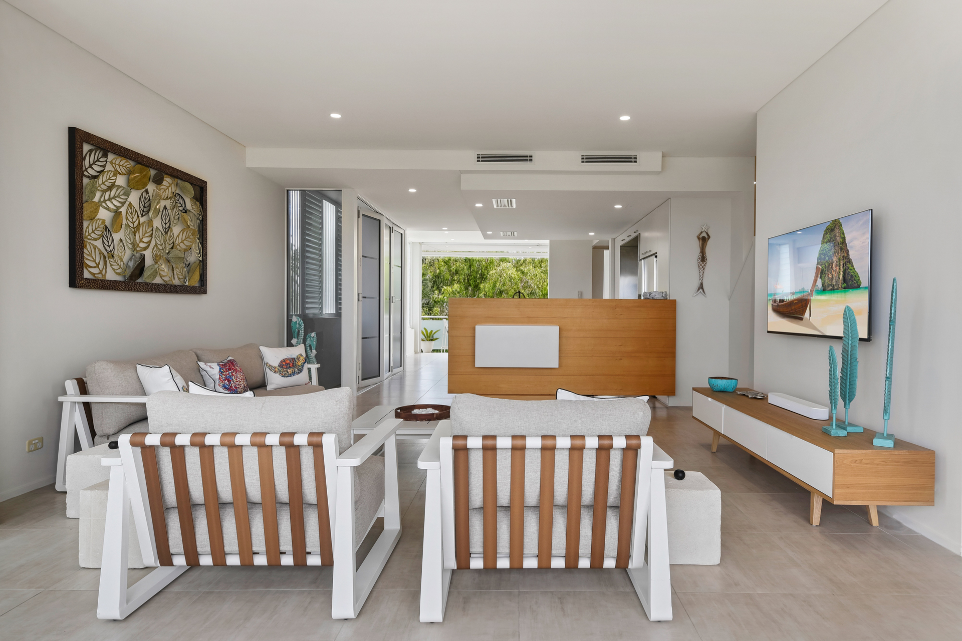 • Luxury, sophistication & location shine • Coveted exclusive Point Arkwright location • 2 bedrooms, 2.5 bathrooms, office/3rd bedroom • Open plan living, galley-style kitchen • Exclusive inground saltwater swimming pool